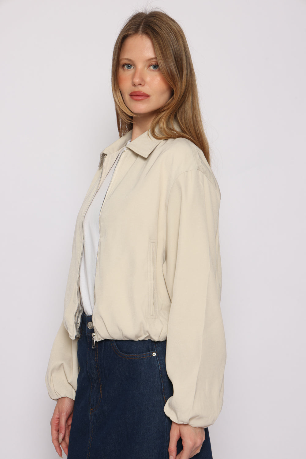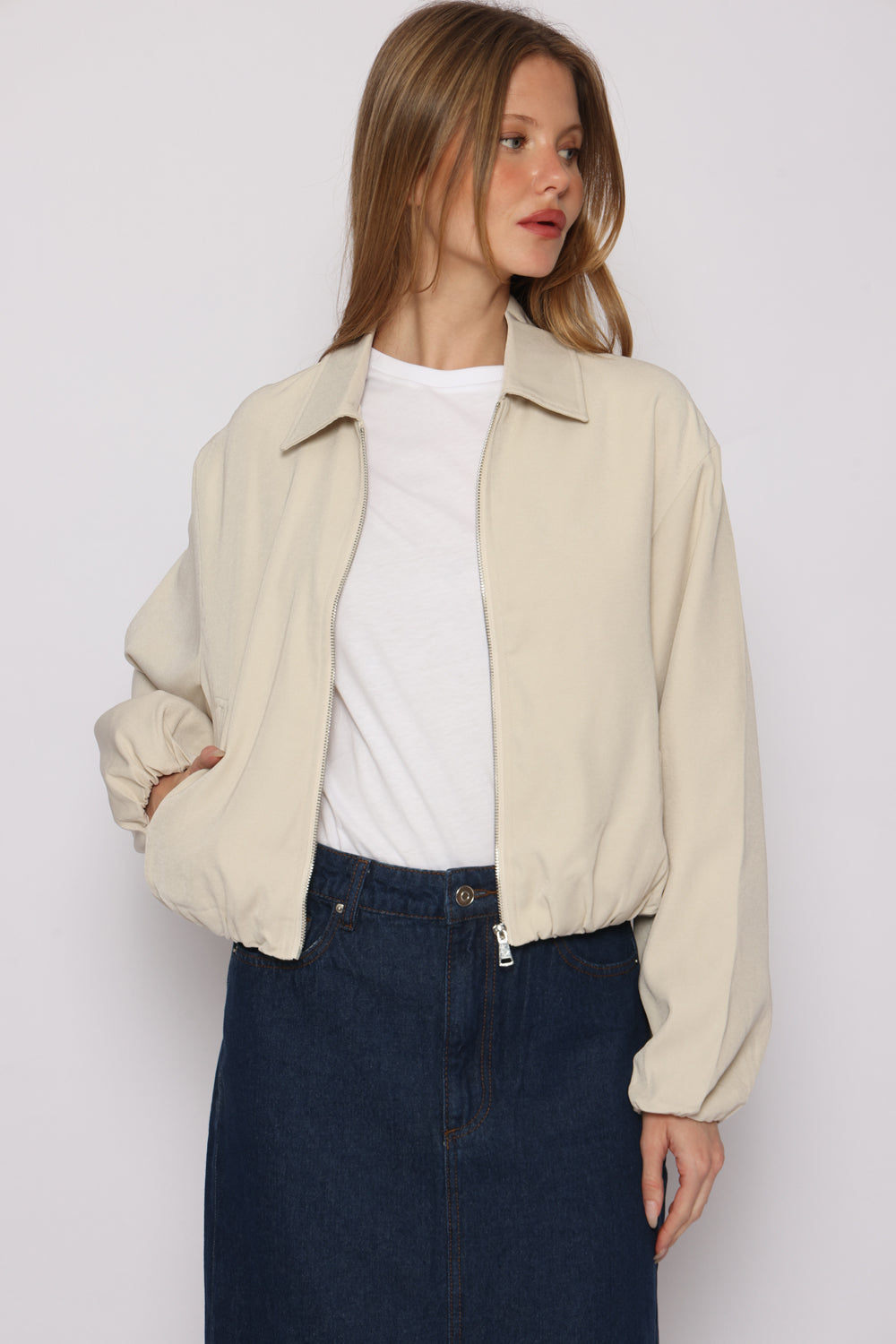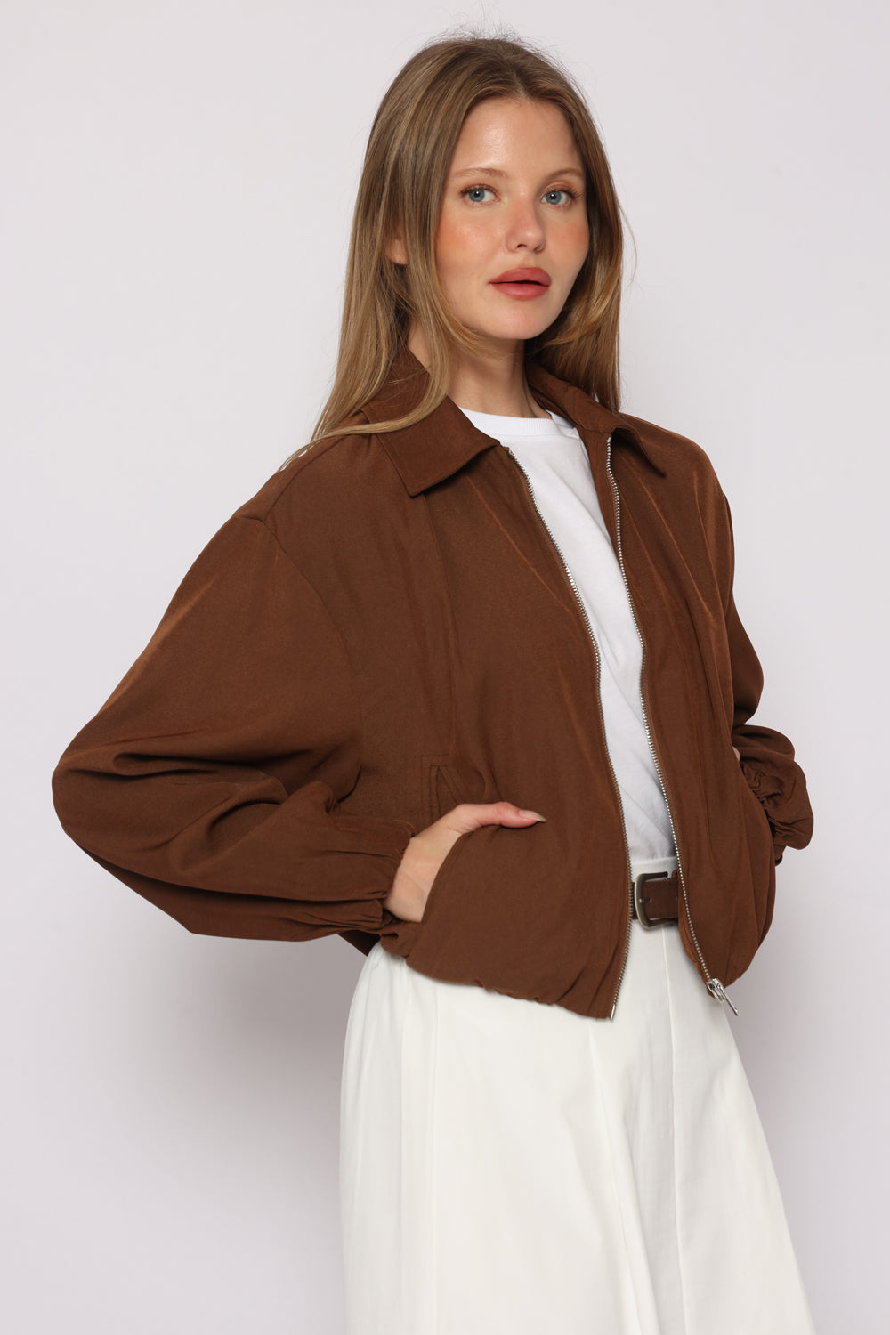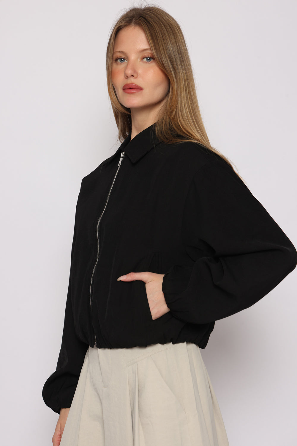 ג'קט עם רוכסן וכיסים וגומי במותן