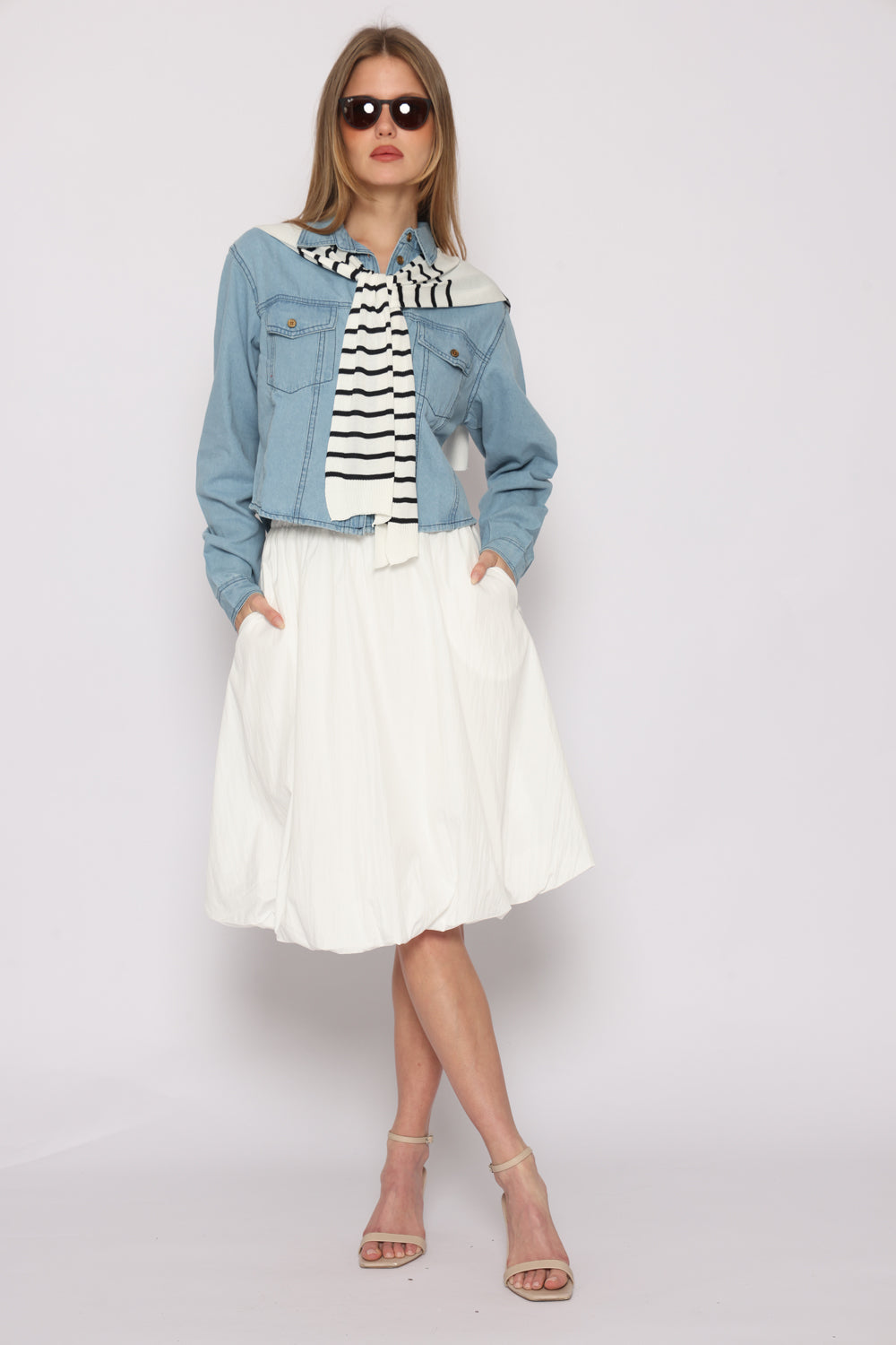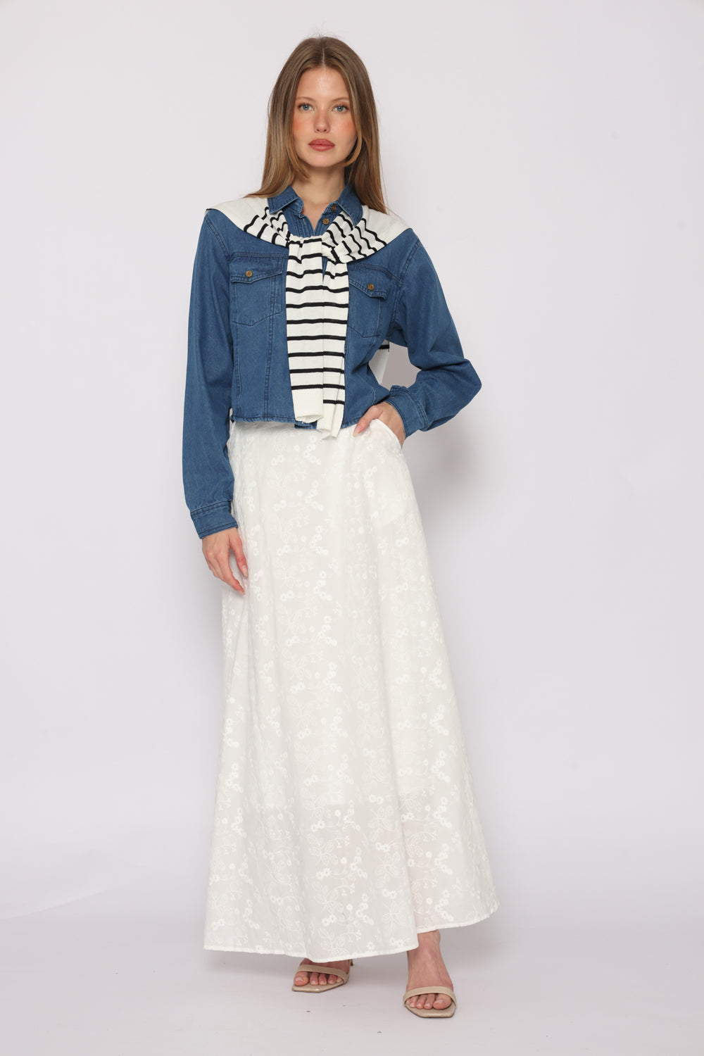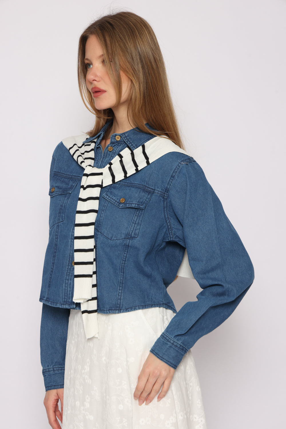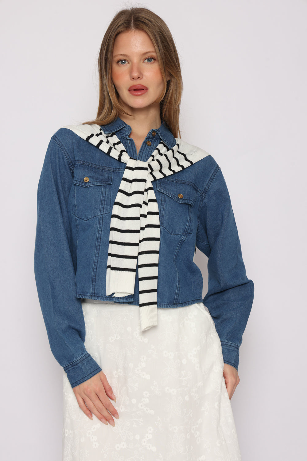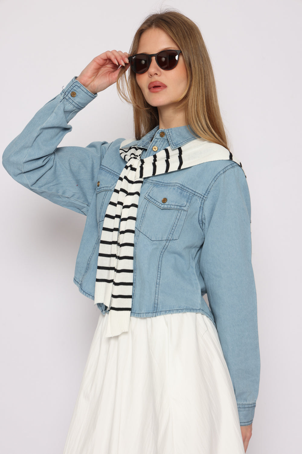 חולצת גינס מגיעה עם צעיף לא מחובר לחולצה