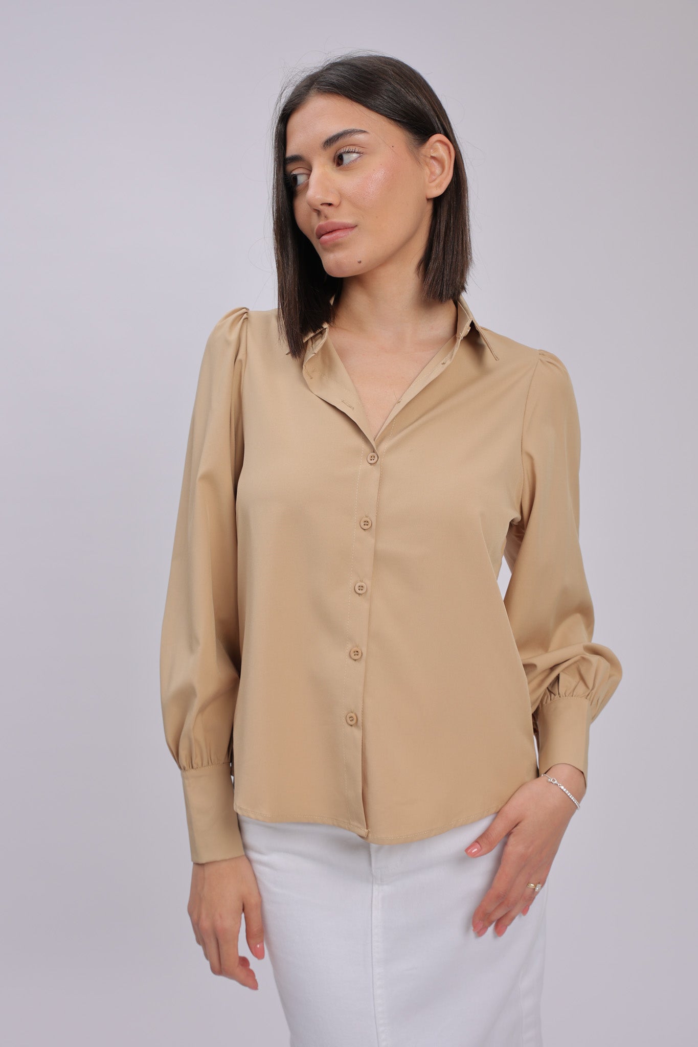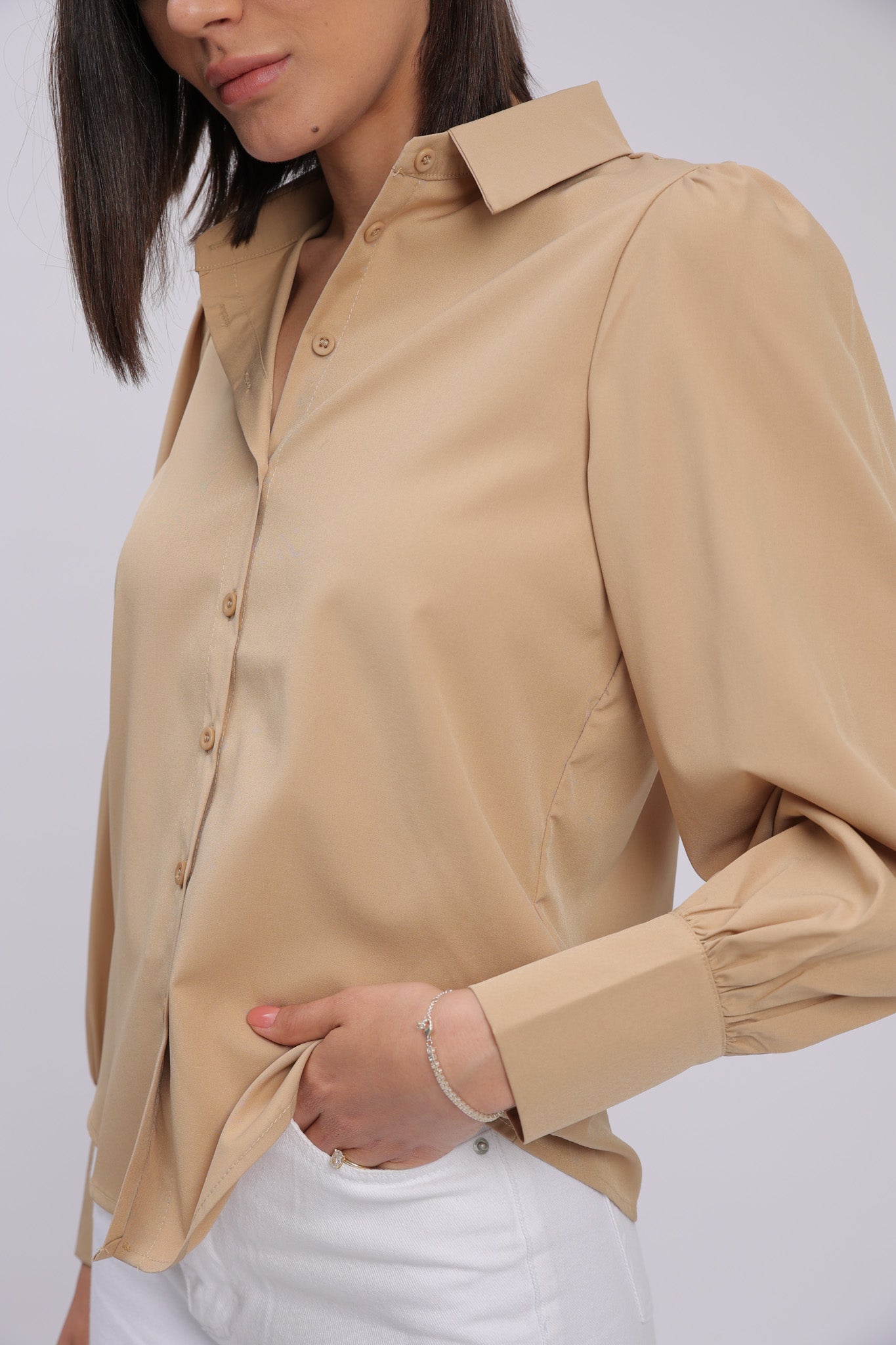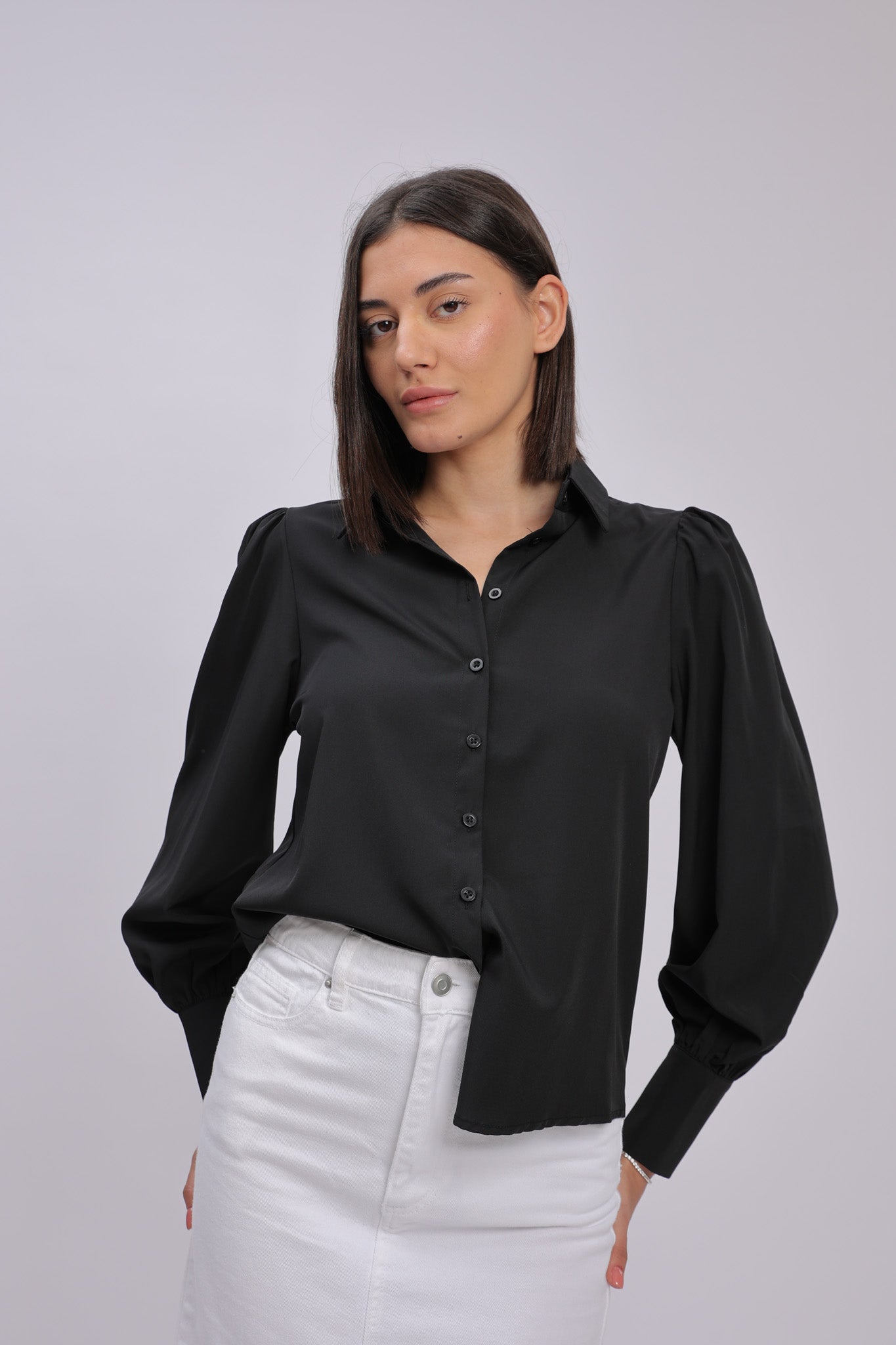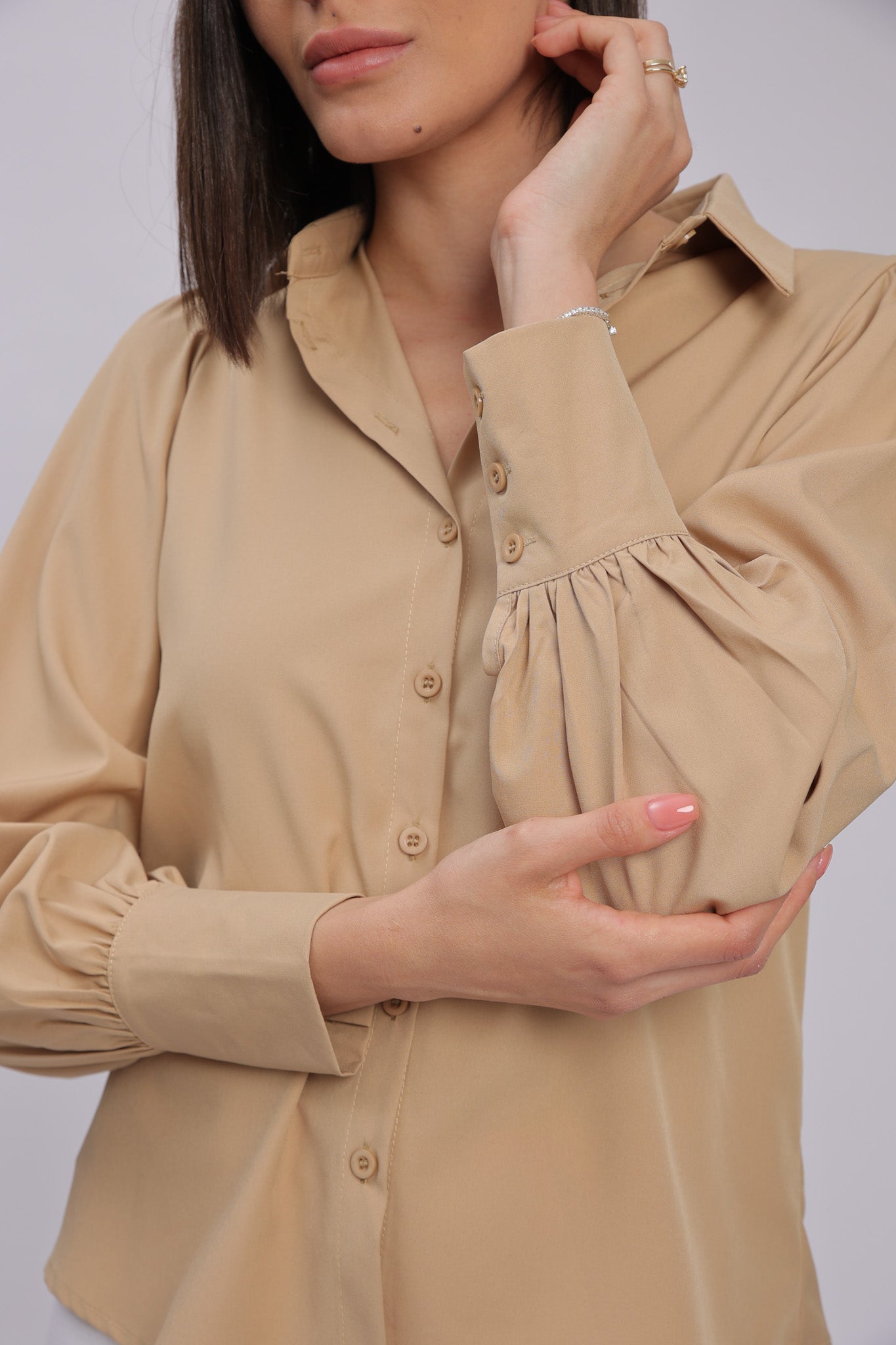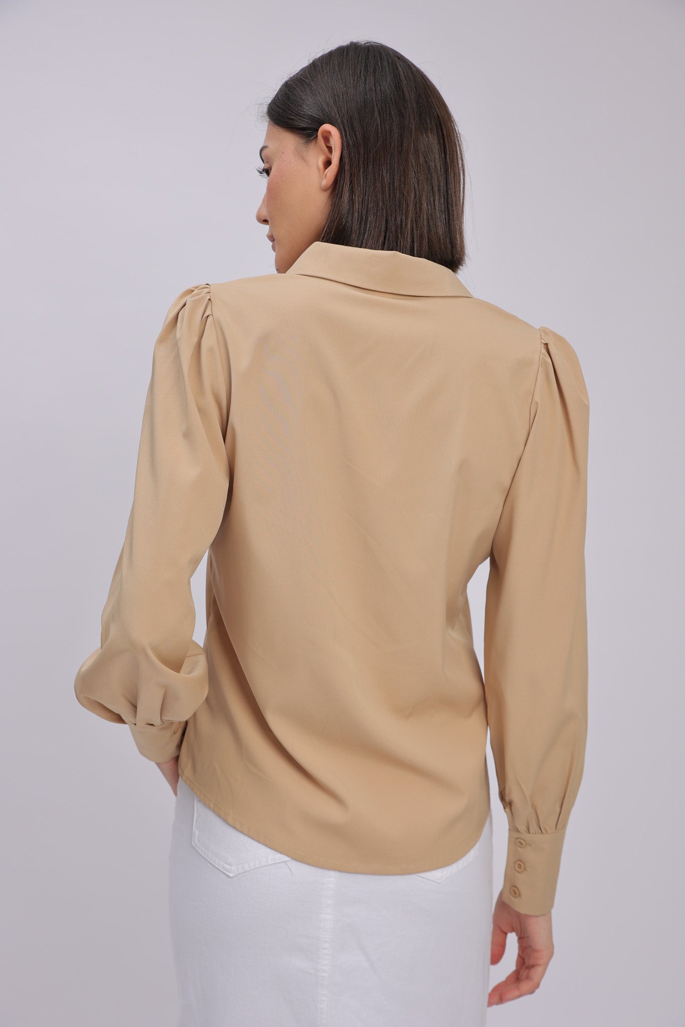 חולצה מכופתרת עם כיווצים בכתפיים מבד אקפולקו
