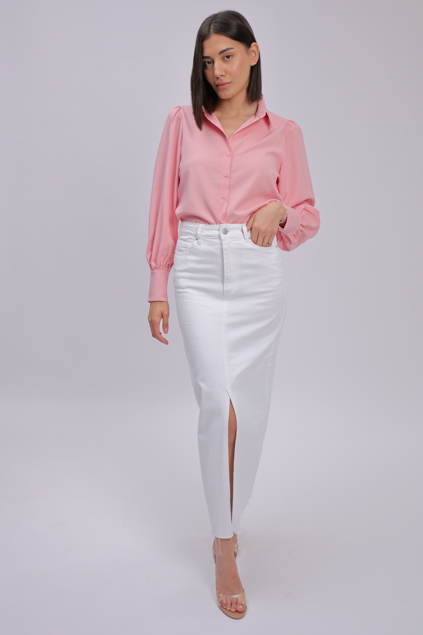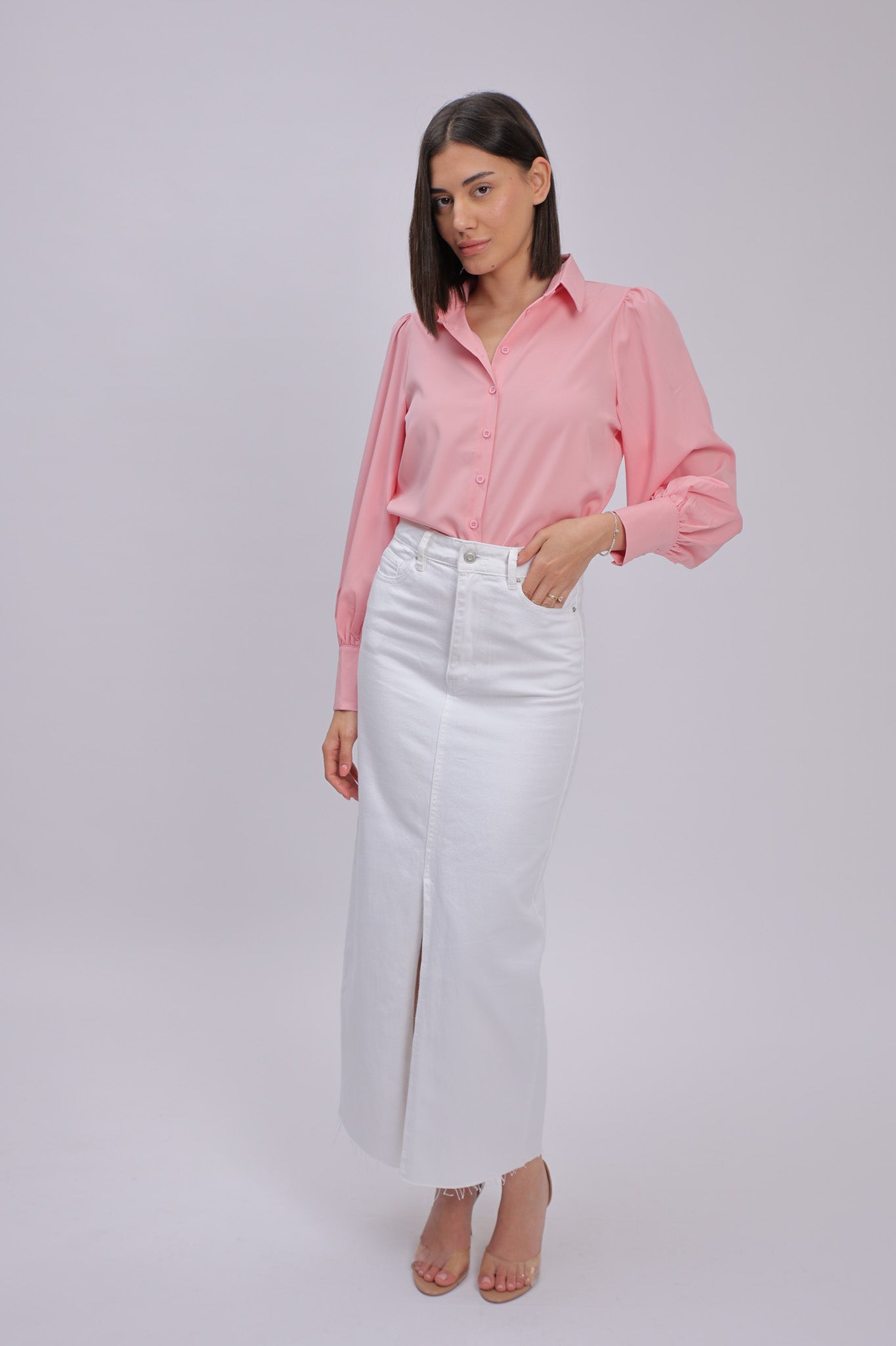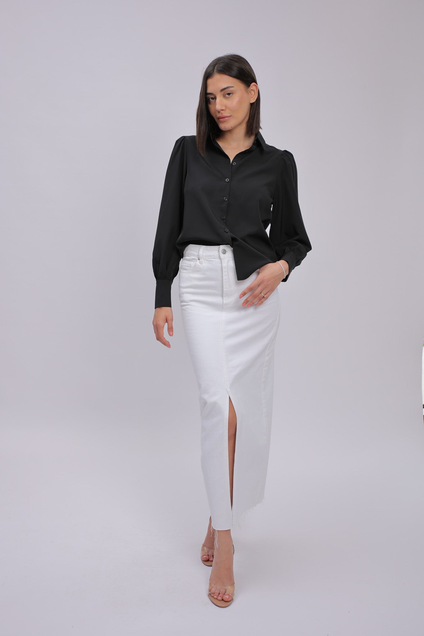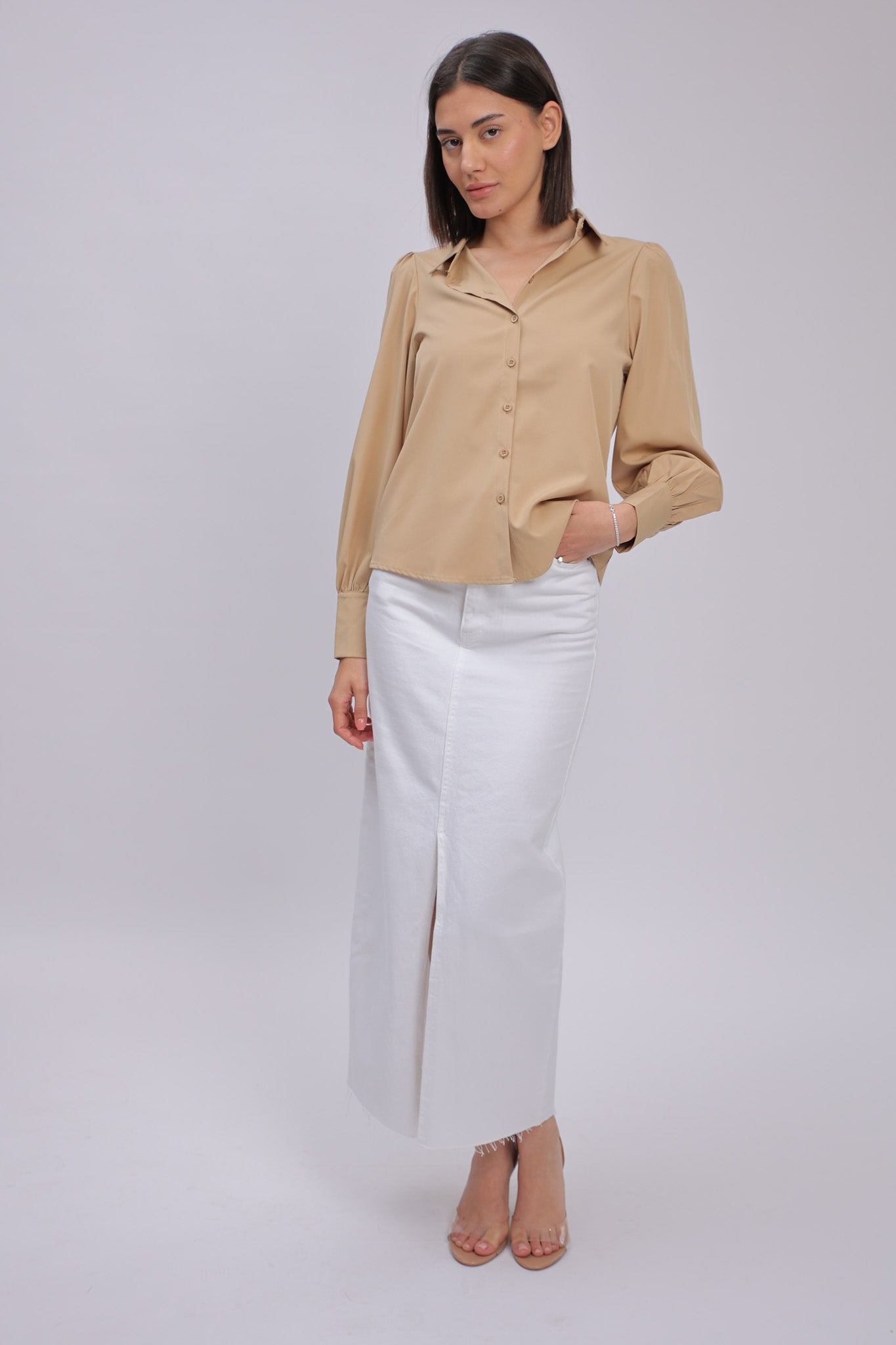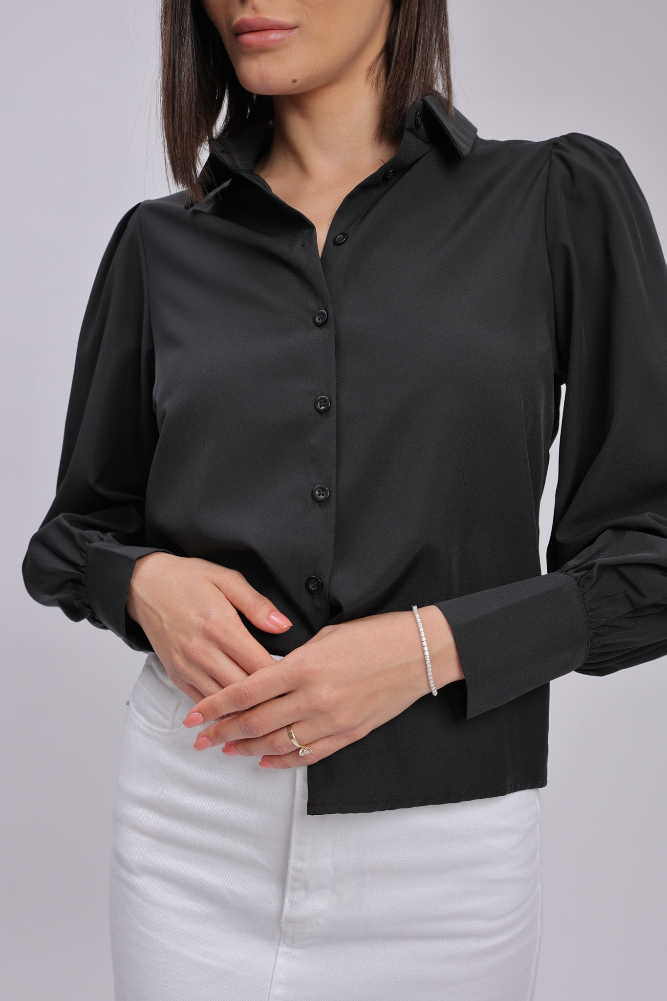 חולצה מכופתרת עם כיווצים בכתפיים מבד אקפולקו