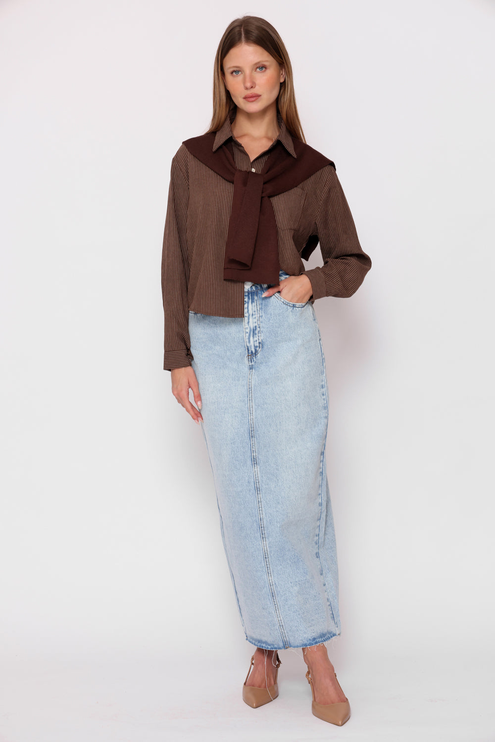 חצאית גינס , שסע מאחורה, החצאית מגיעה ללא חגורה