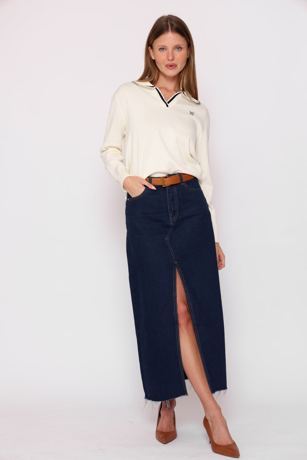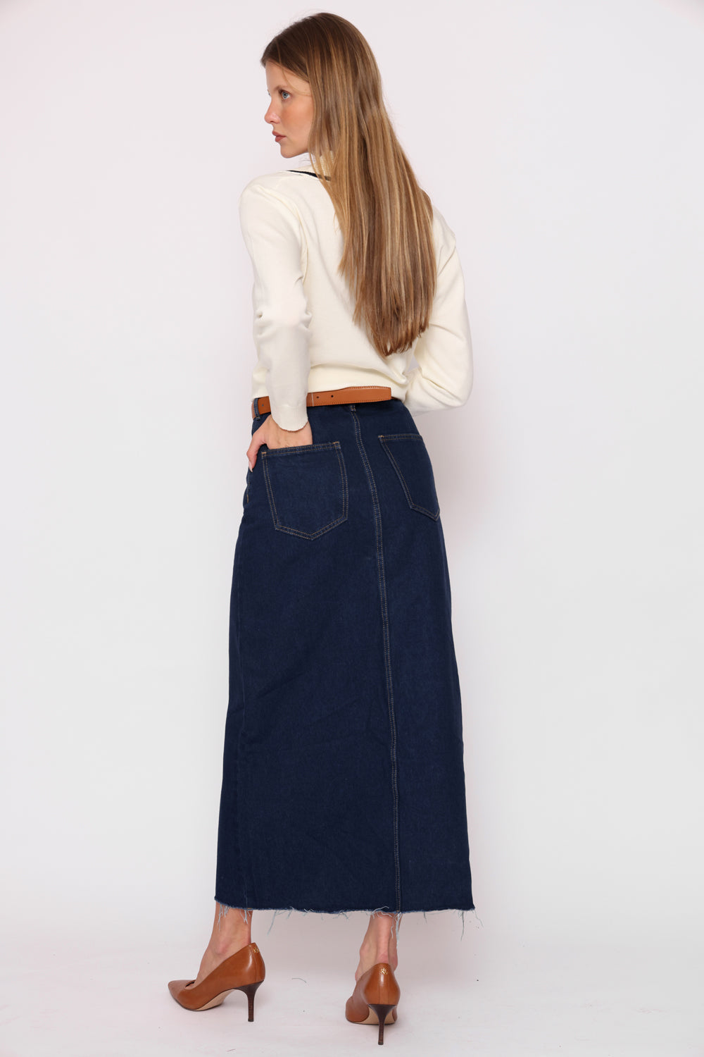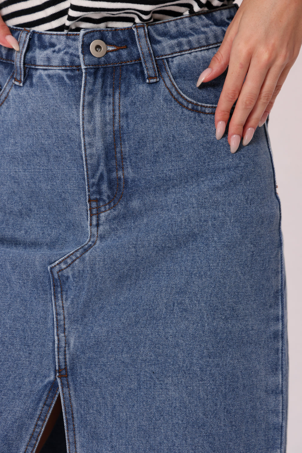 חצאית גינס , שסע מקדימה, החצאית מגיעה ללא חגורה