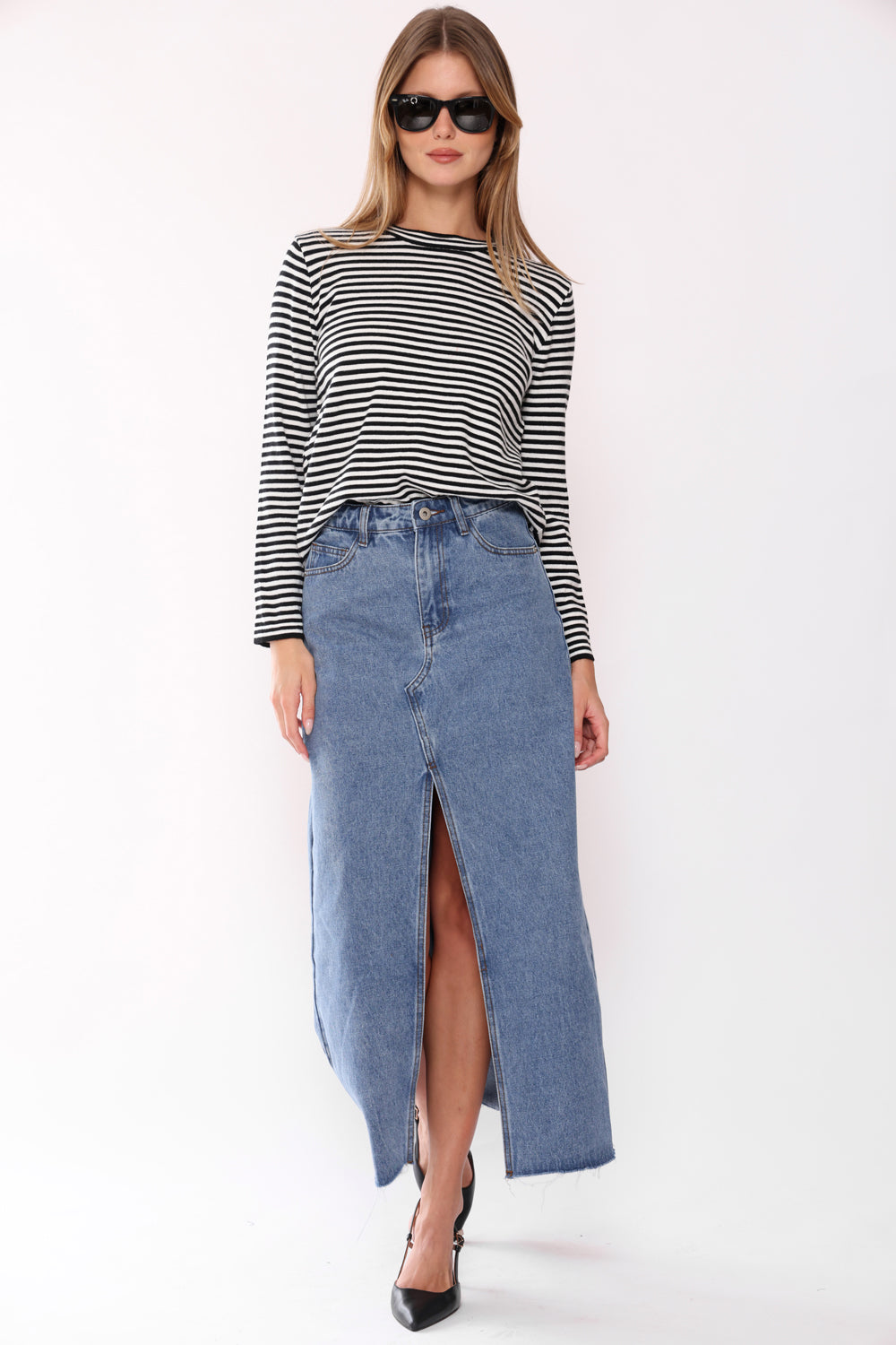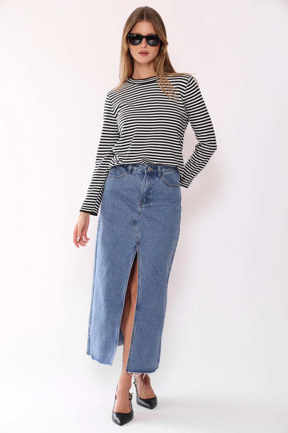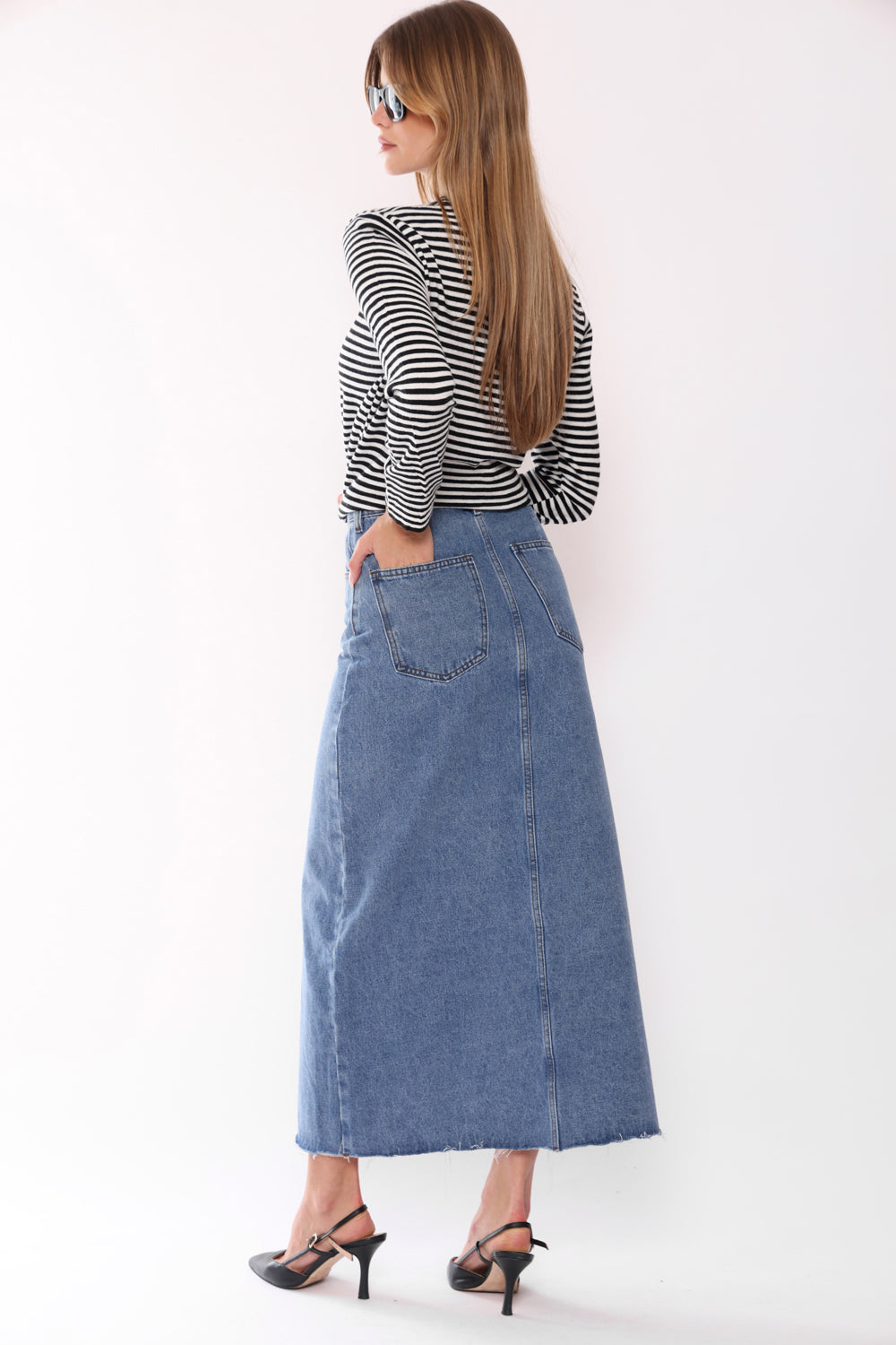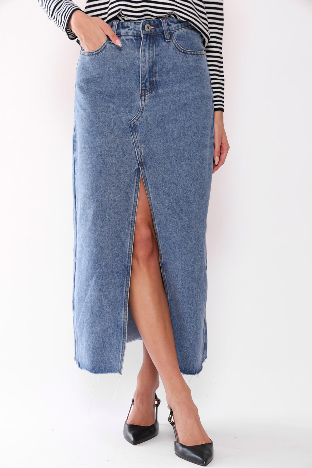 חצאית גינס , שסע מקדימה, החצאית מגיעה ללא חגורה