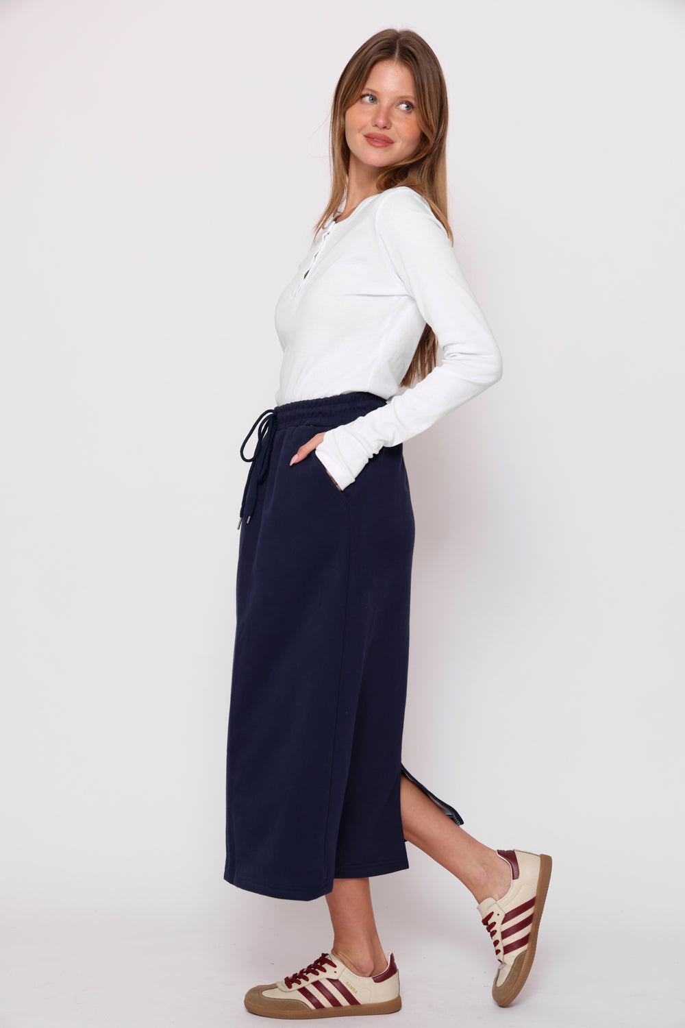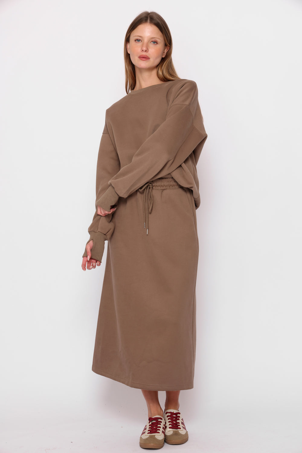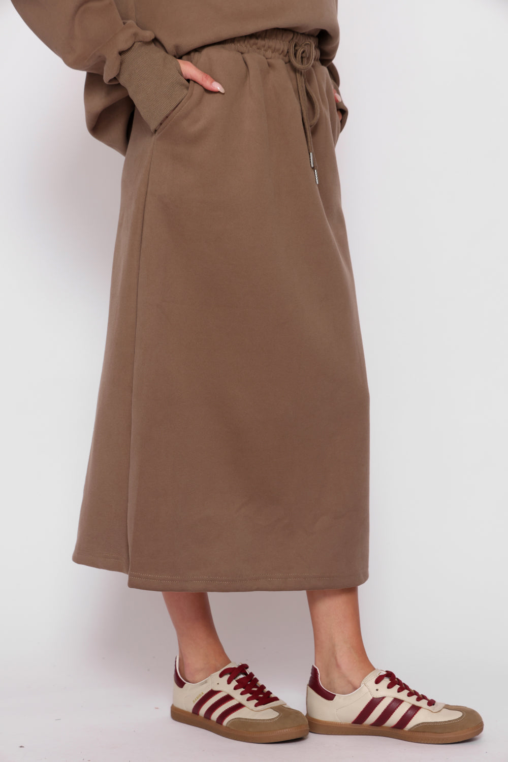חצאית עם גומי במותן, שסע מאחורה, בד פוטר ווש, ניתן לשלב עם חולצה תואמת