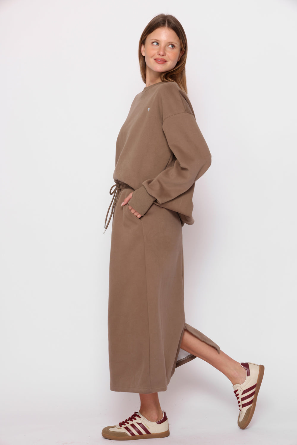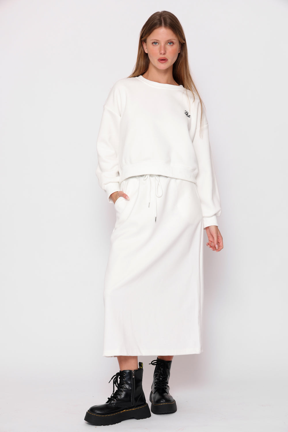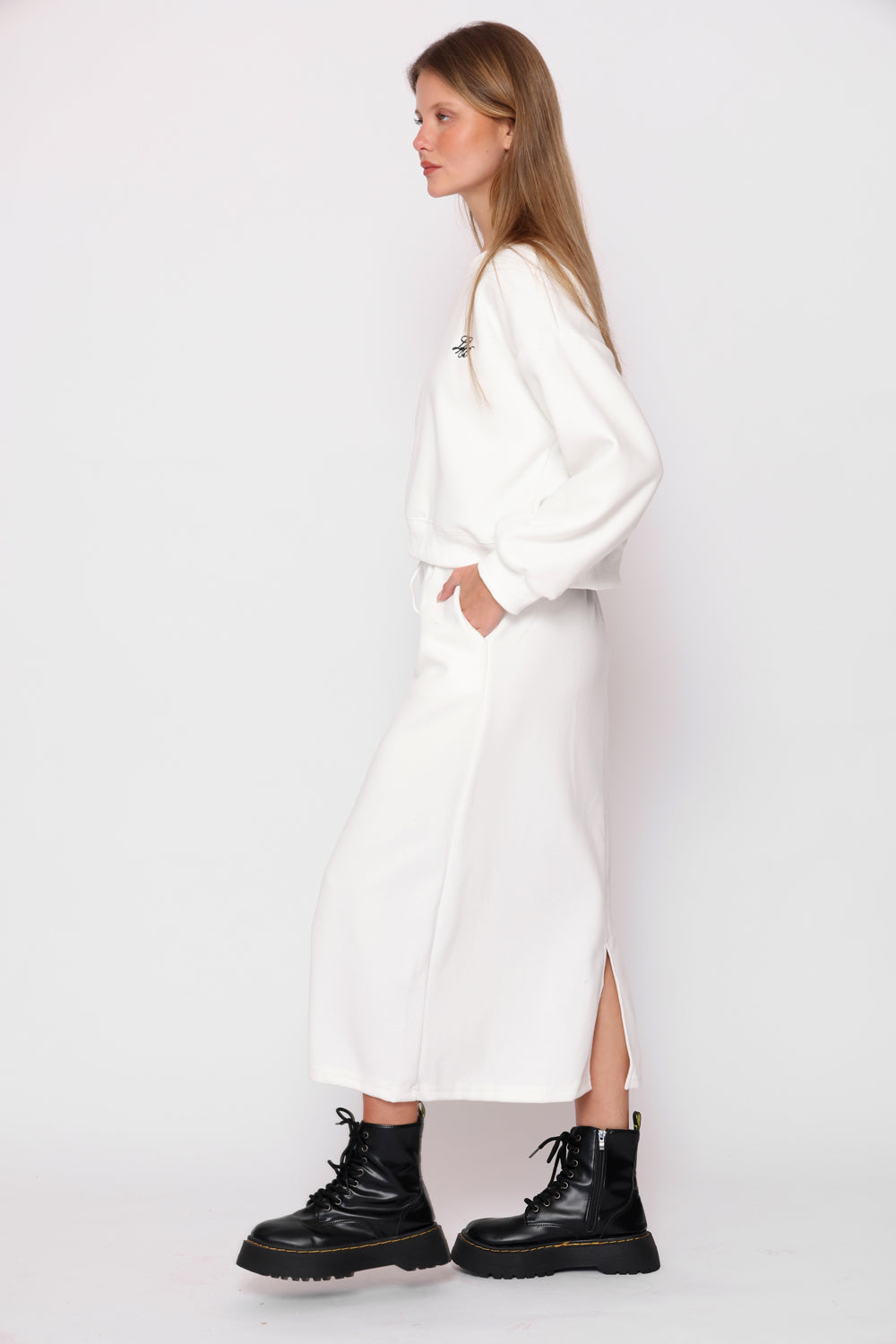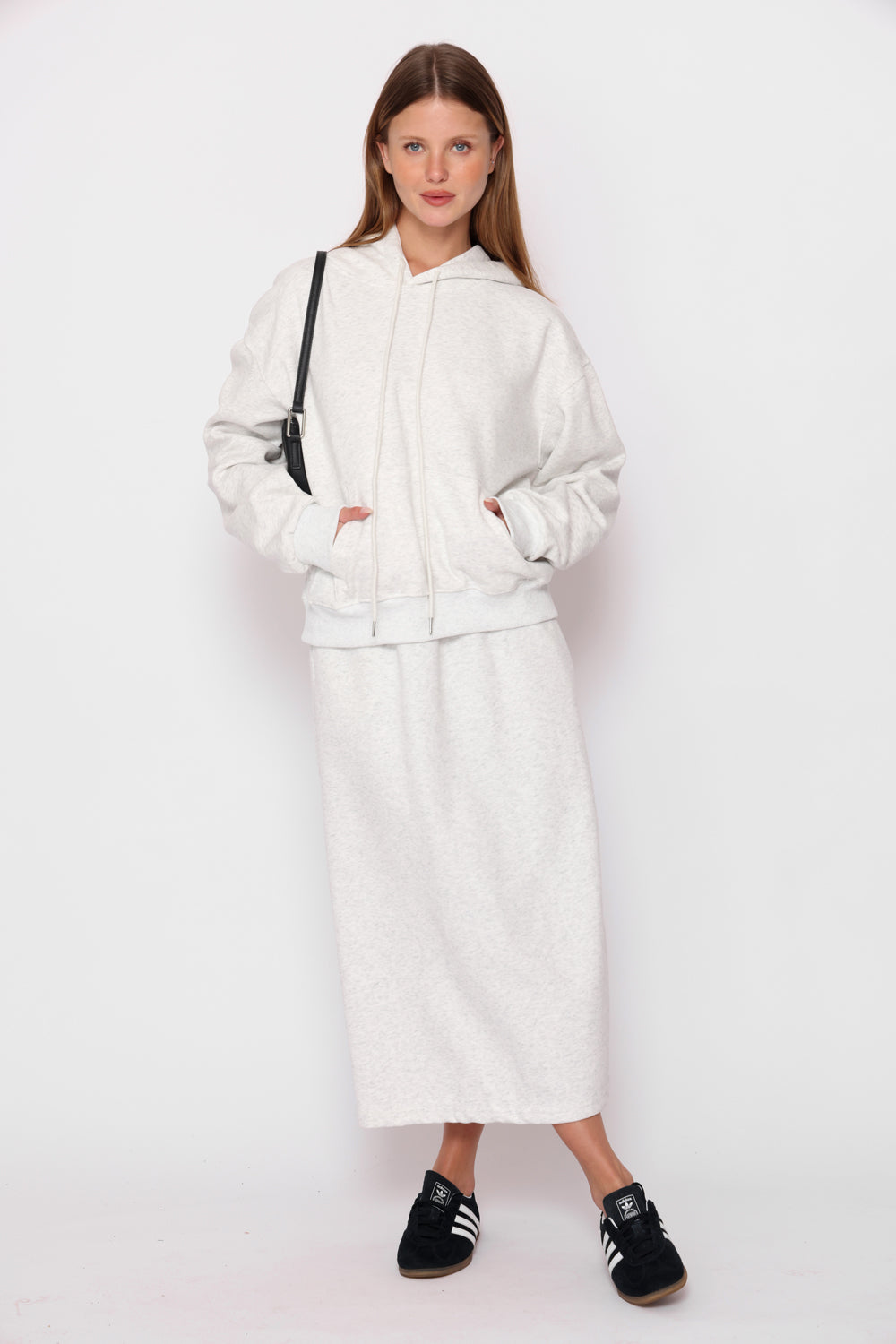 חצאית עם גומי במותן, שסע מאחורה, בד פוטר ווש, ניתן לשלב עם חולצה תואמת