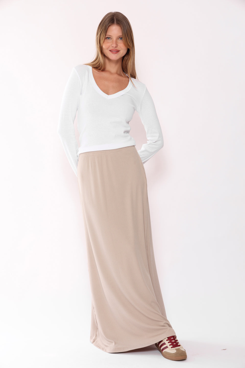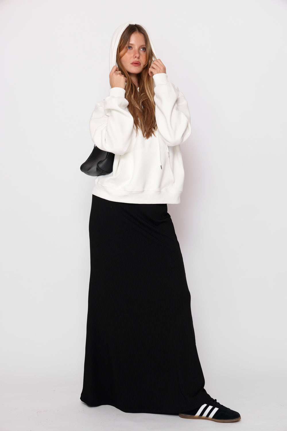 מידות דוגמנית: גובה: 1.67 מ’, היקף חזה: 75 ס”מ, היקף מותניים: 64 ס”מ, היקף ירכיים: 87 ס”מ