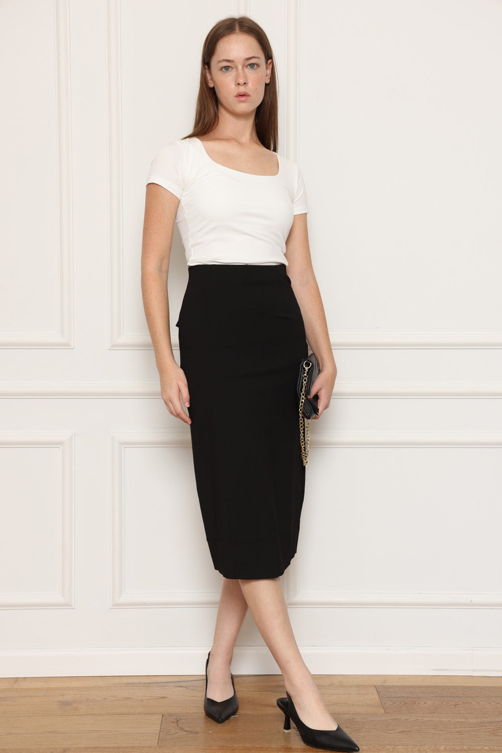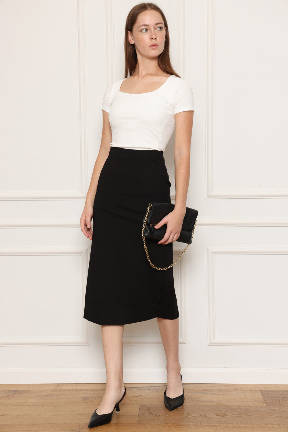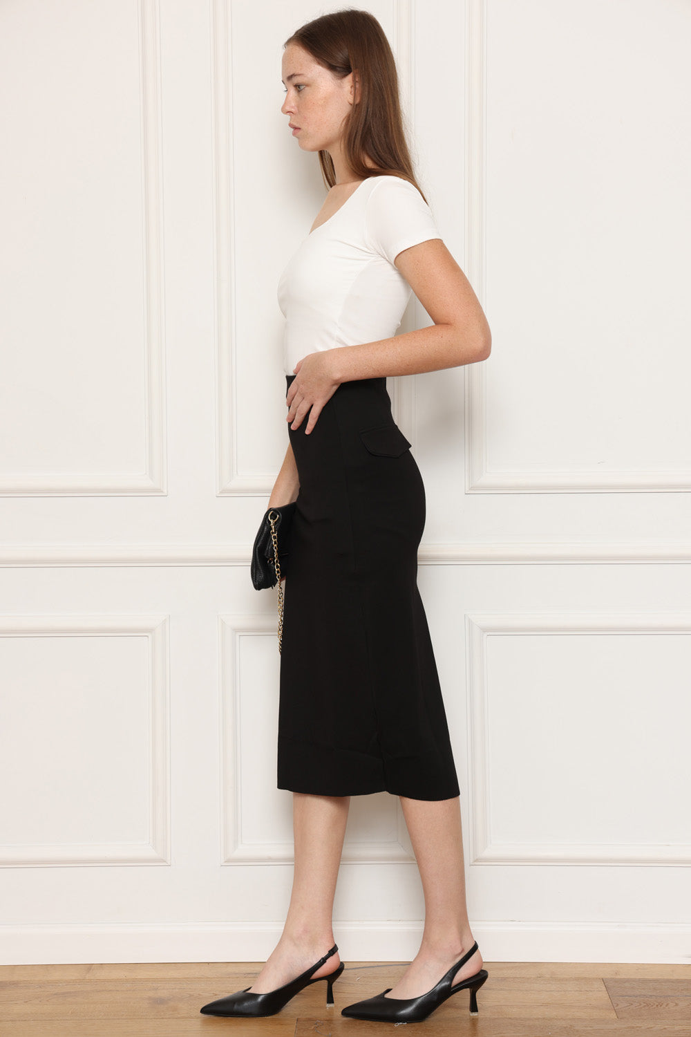 חצאית עם כיסים מאחורה, שסע מאחורה