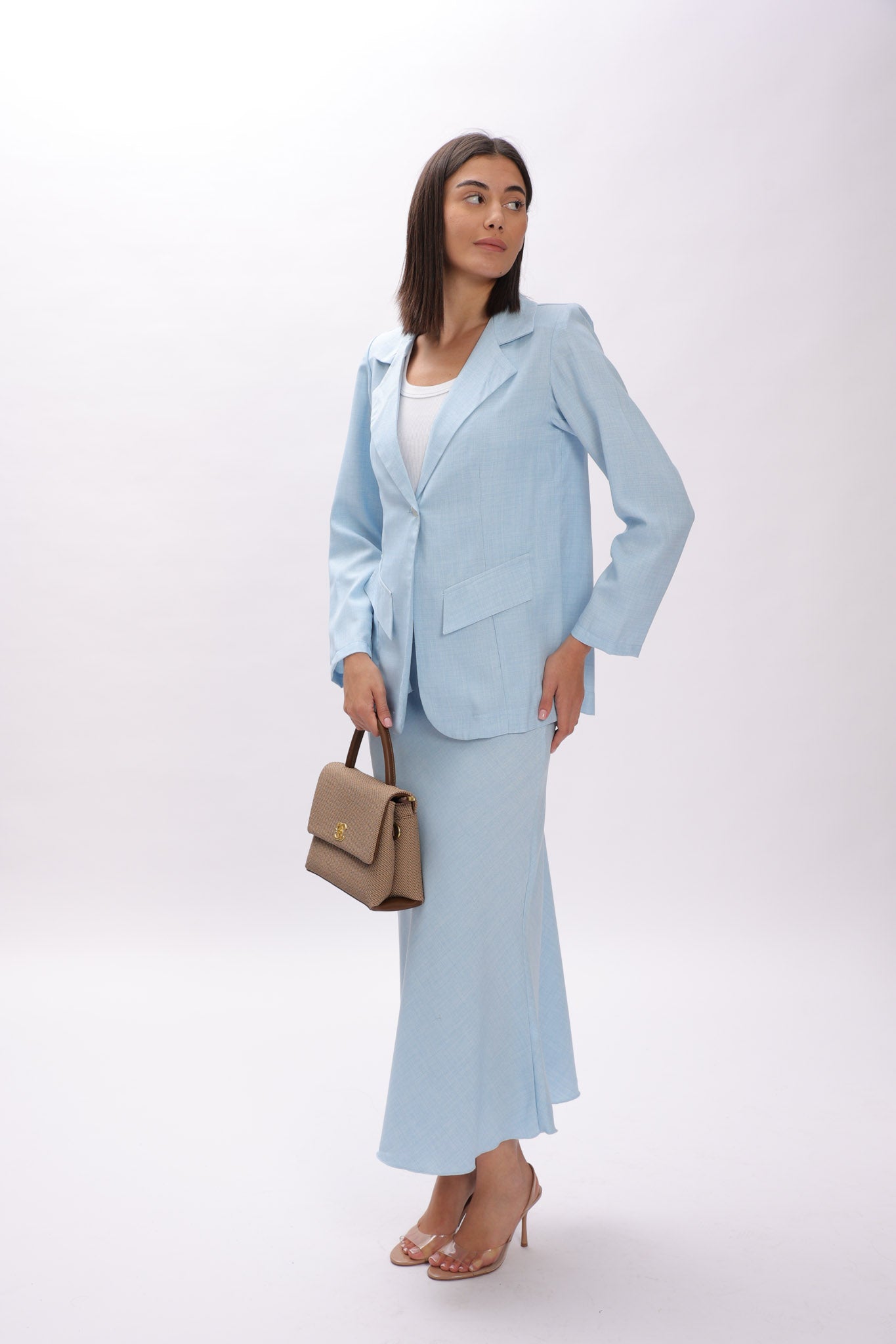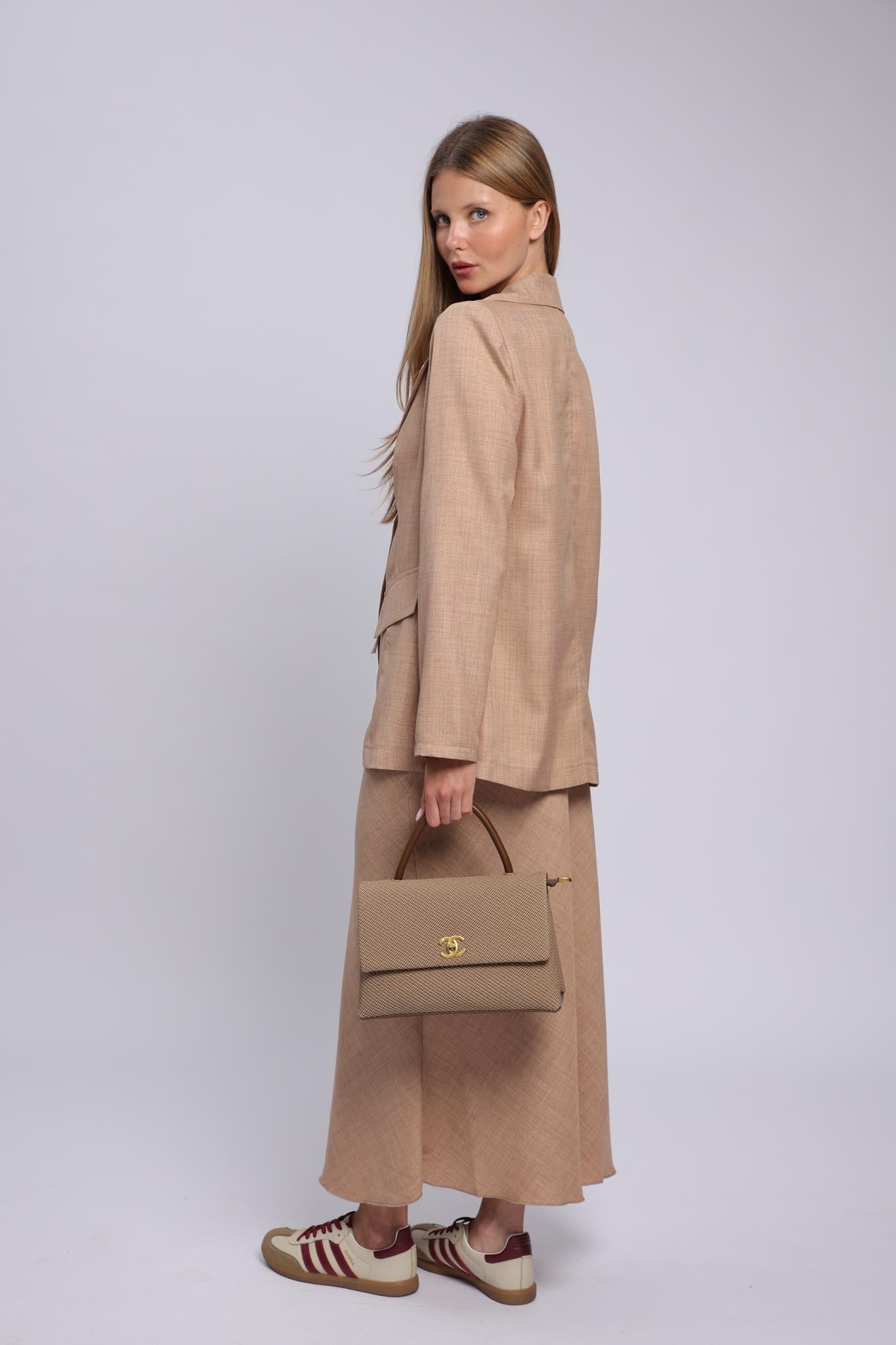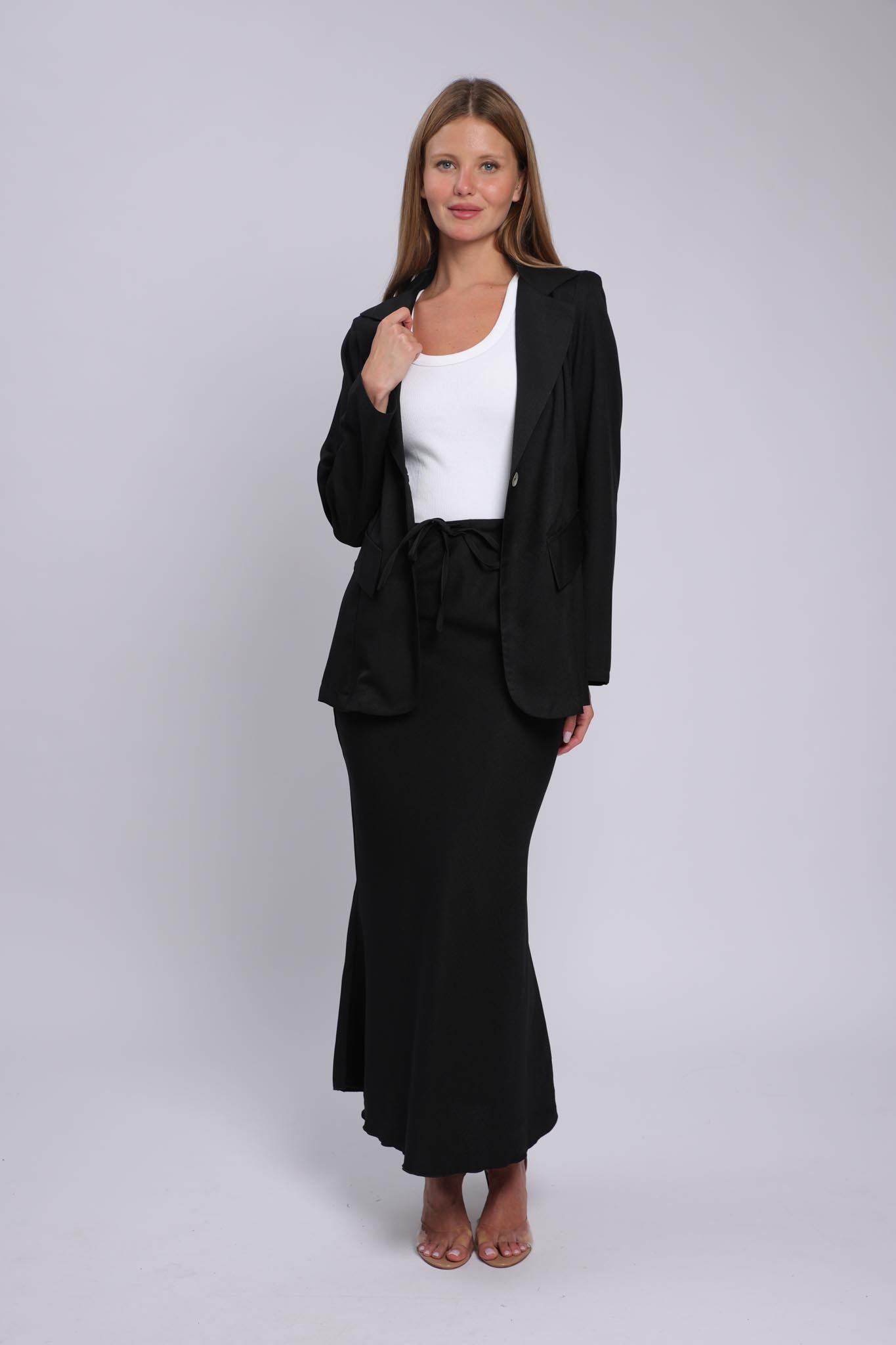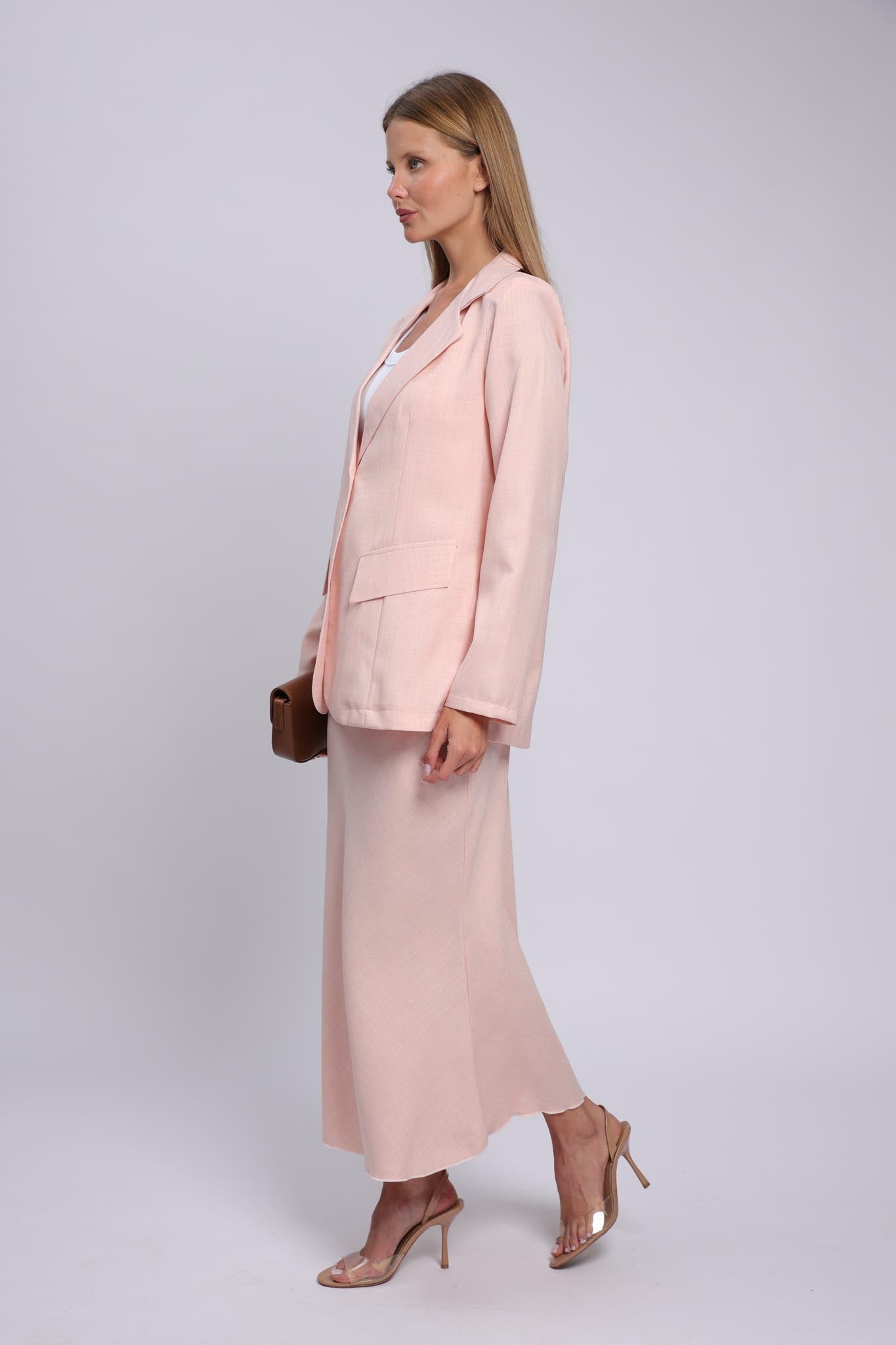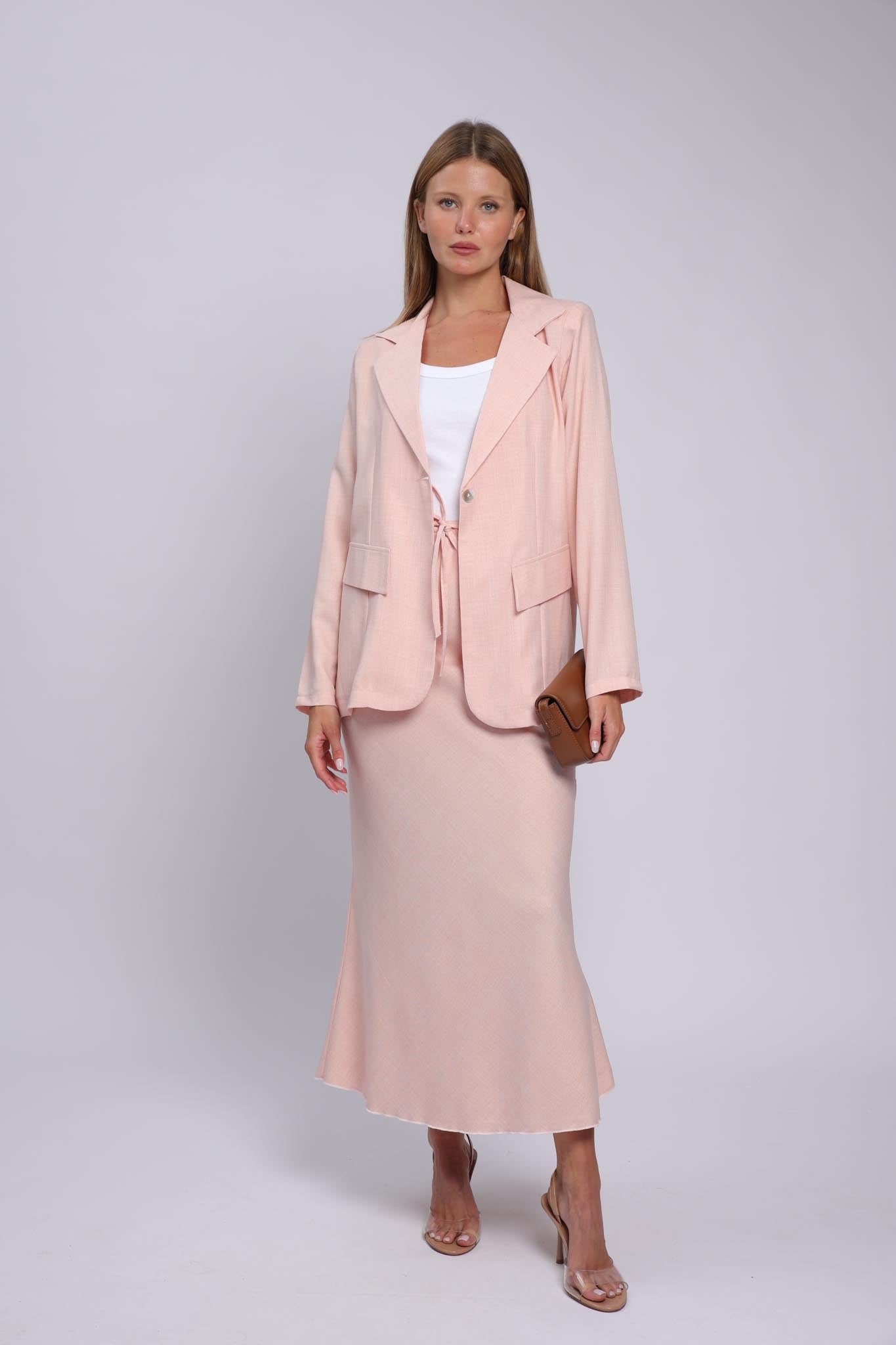 חצאית מבד דמוי פשתן, ניתן להתאים עם ג'קט פריאל לחליפה