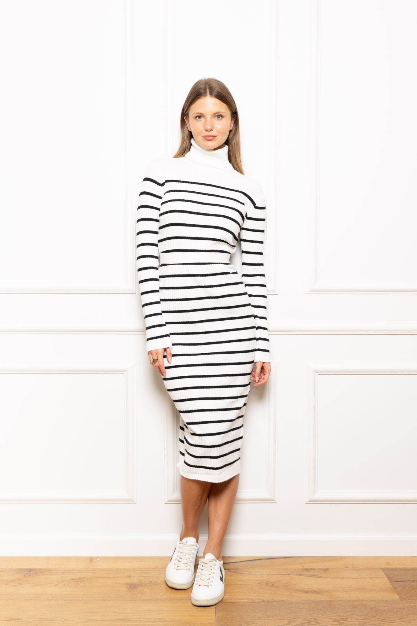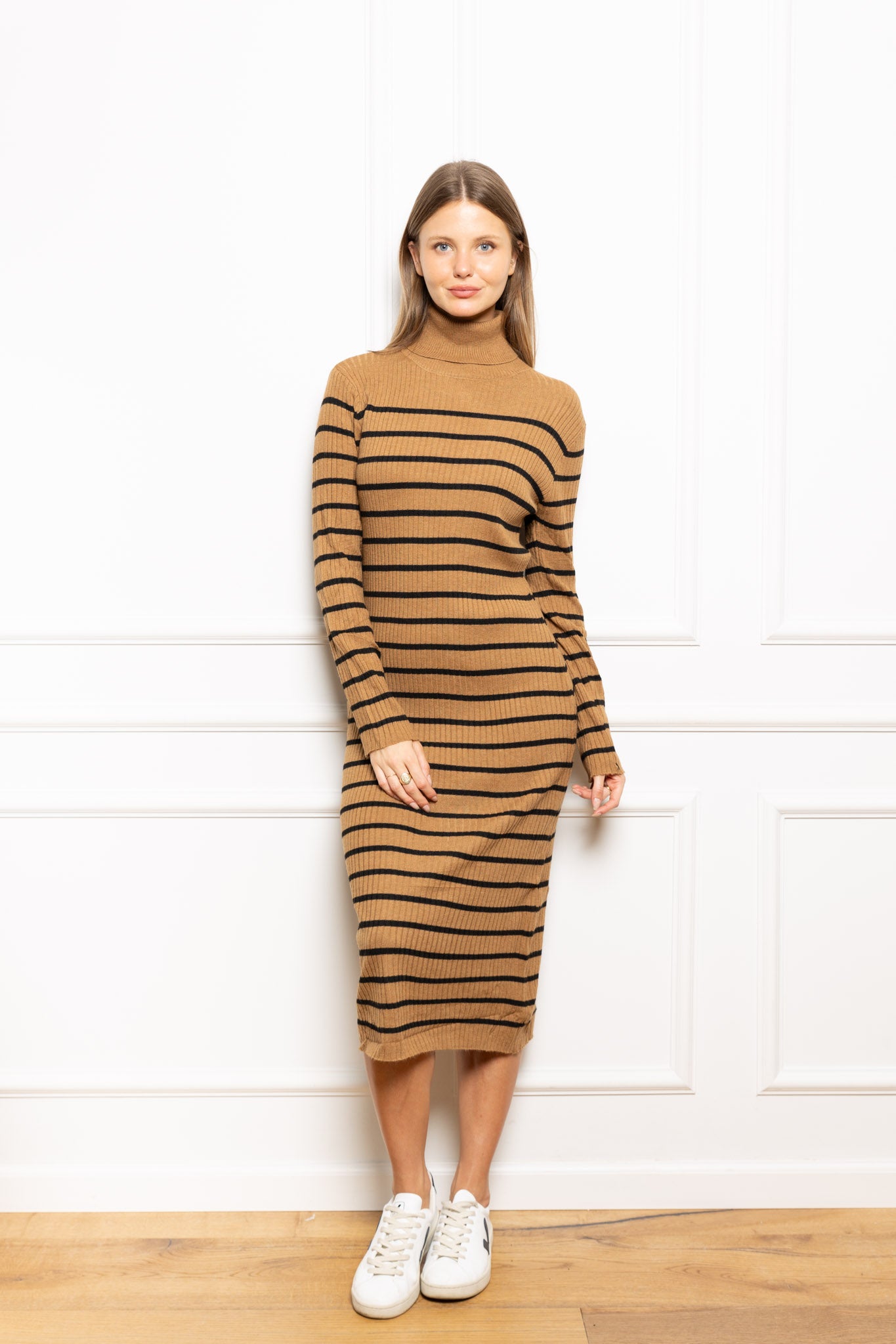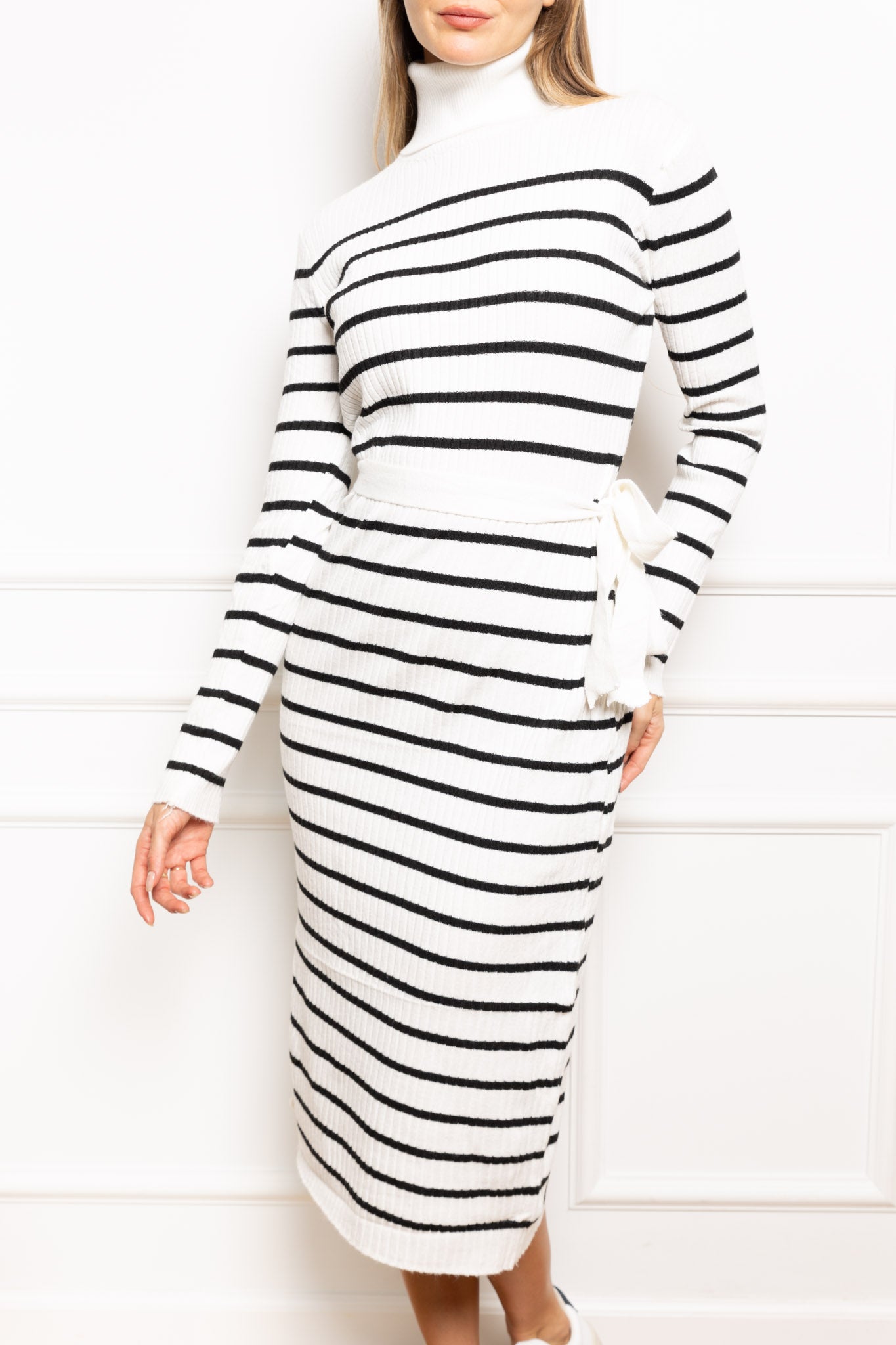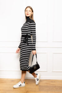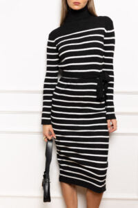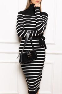 שמלה סריג פסים, מגיעה עם סרט לקשירה (ניתן ללבוש את השמלה ללא הסרט)