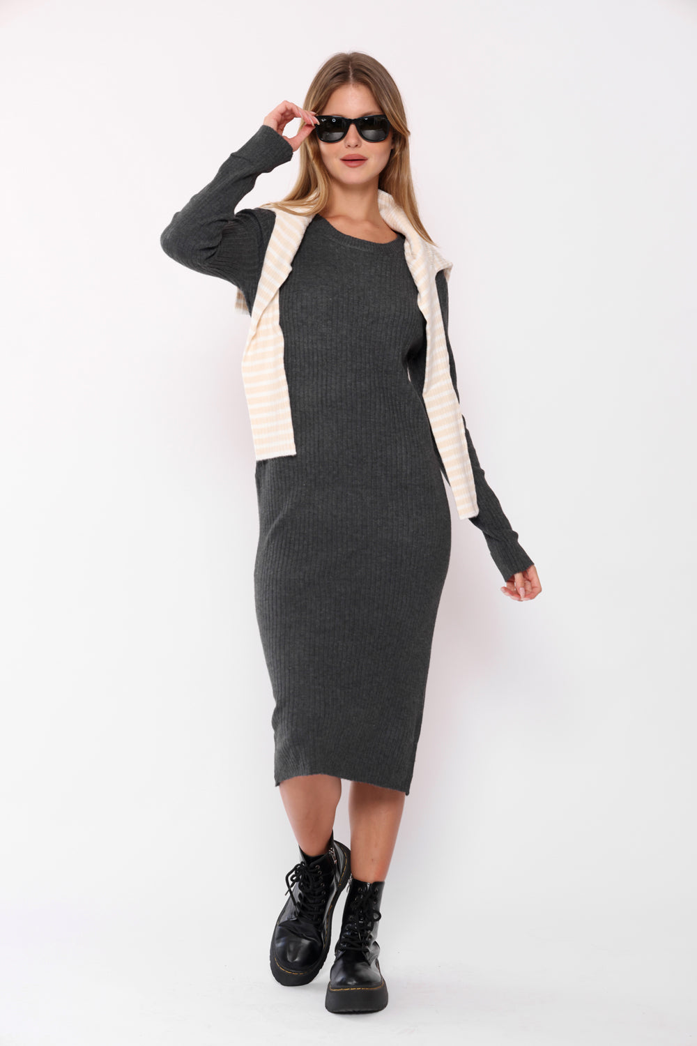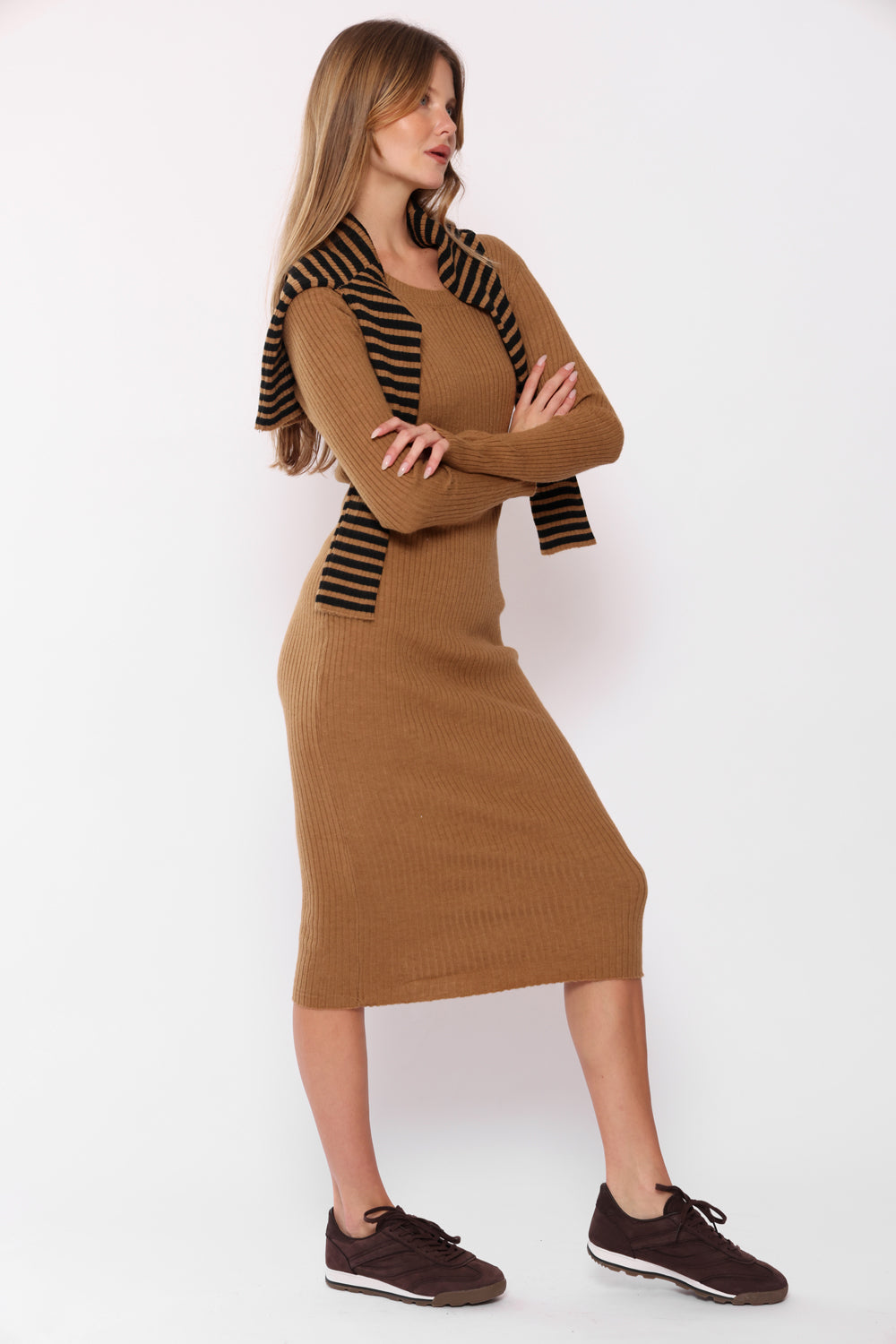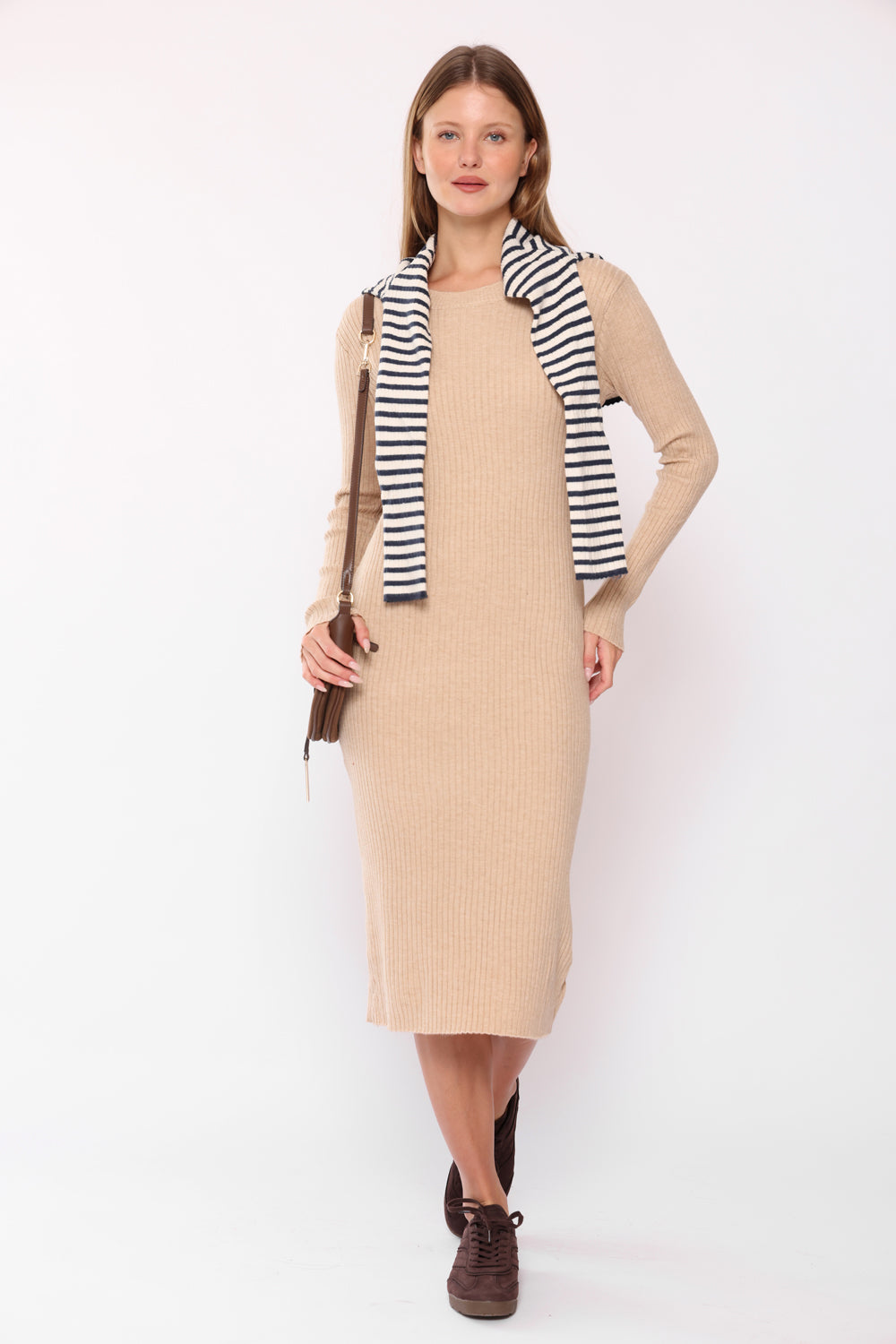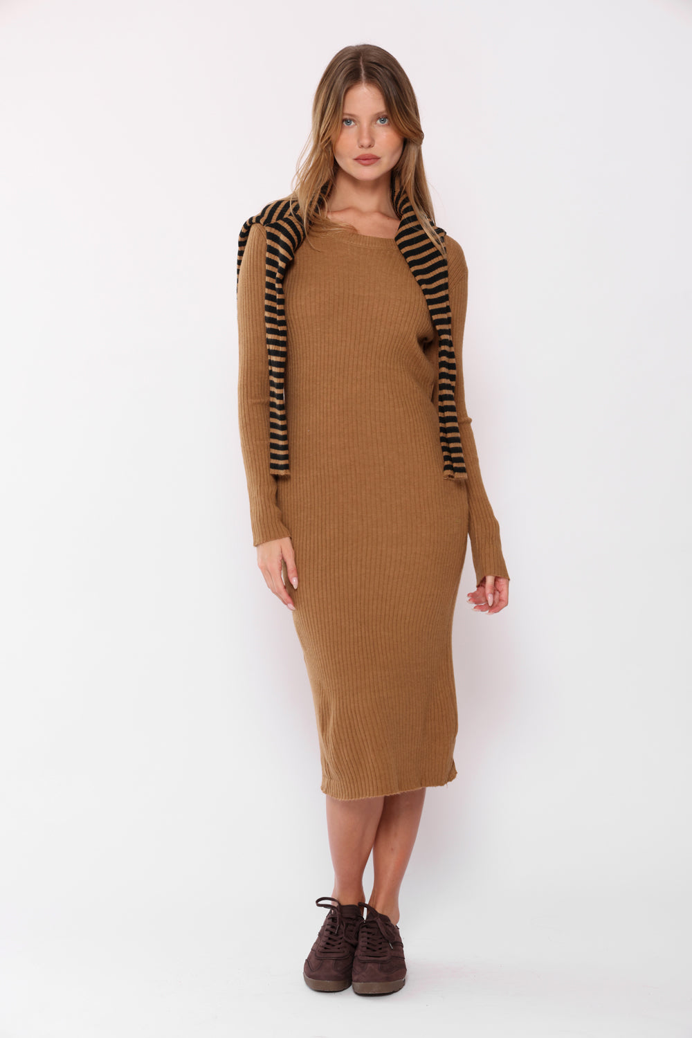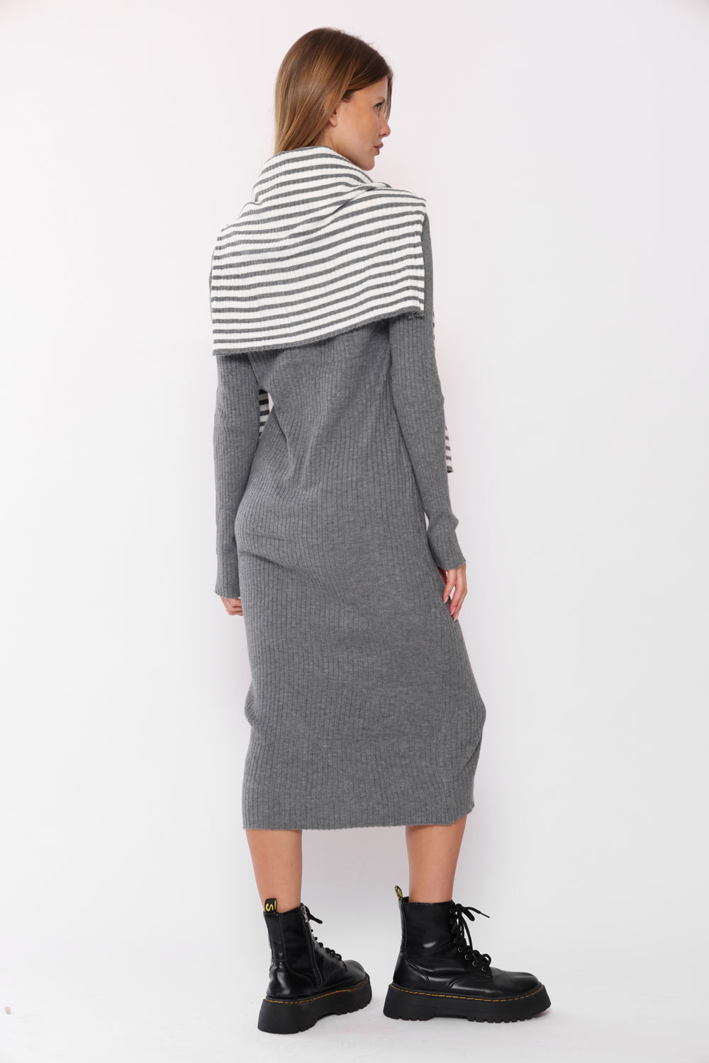 2 פריטים - שמלה סריג ניקי, מגיעה עם סרט לקשירה וחולצת סריג גולף פסים (ניתן ללבוש את השמלה ללא הסרט וללא החולצה)